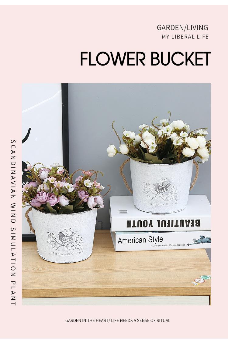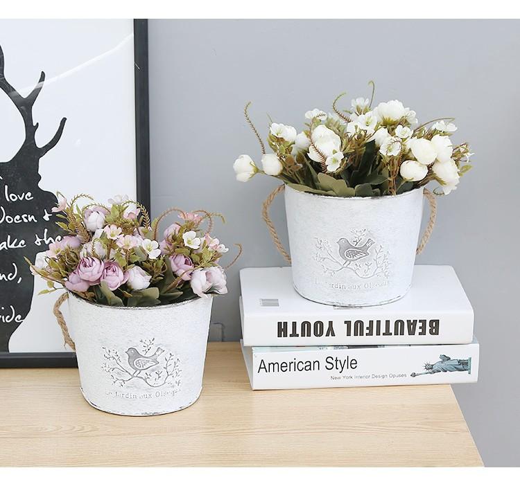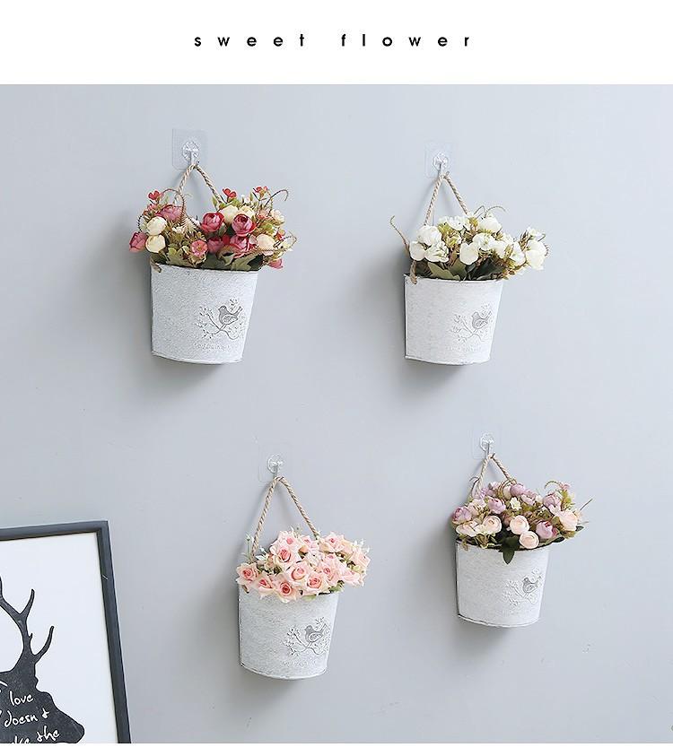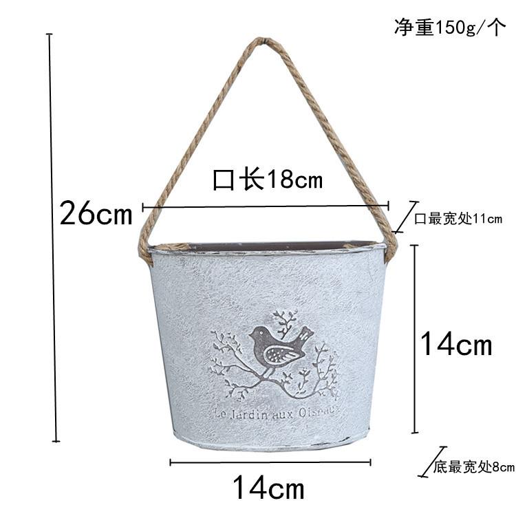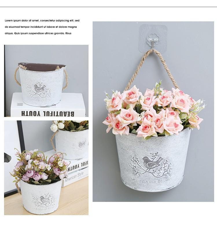 Compra Maceta colgante de pared de hierro estilo pastoral americano, cesta colgante vintage para flores, cesta colgante, maceta decorativa de hojalata para colgar en la pared. al por mayor en Joom.pro
