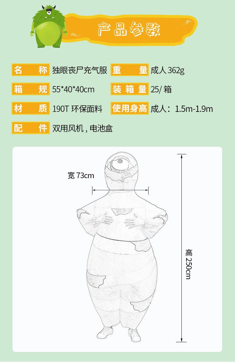 Ropa Inflable de Halloween Adulto Fiesta Carnaval Disfraz de Zombi Tuerto Disfraz de Actuación para Evento Transfronterizo