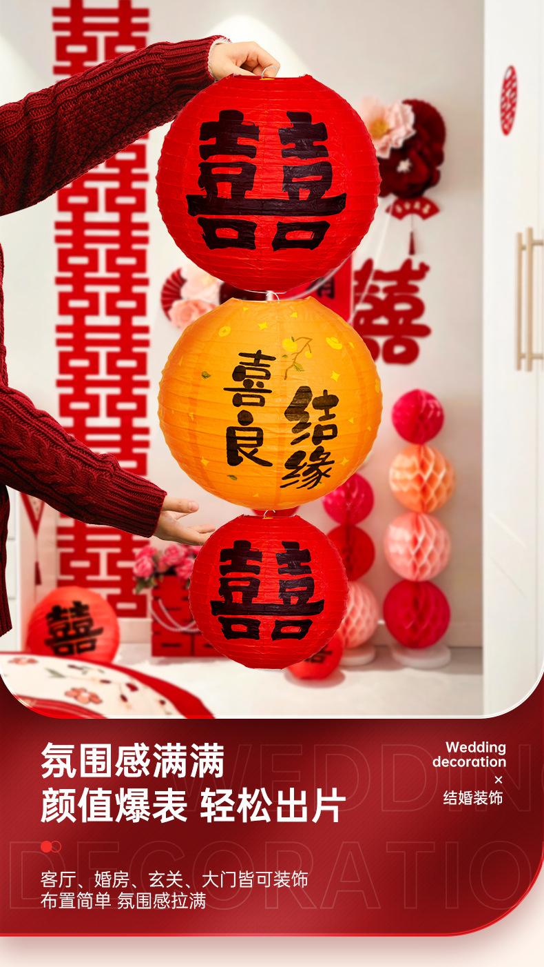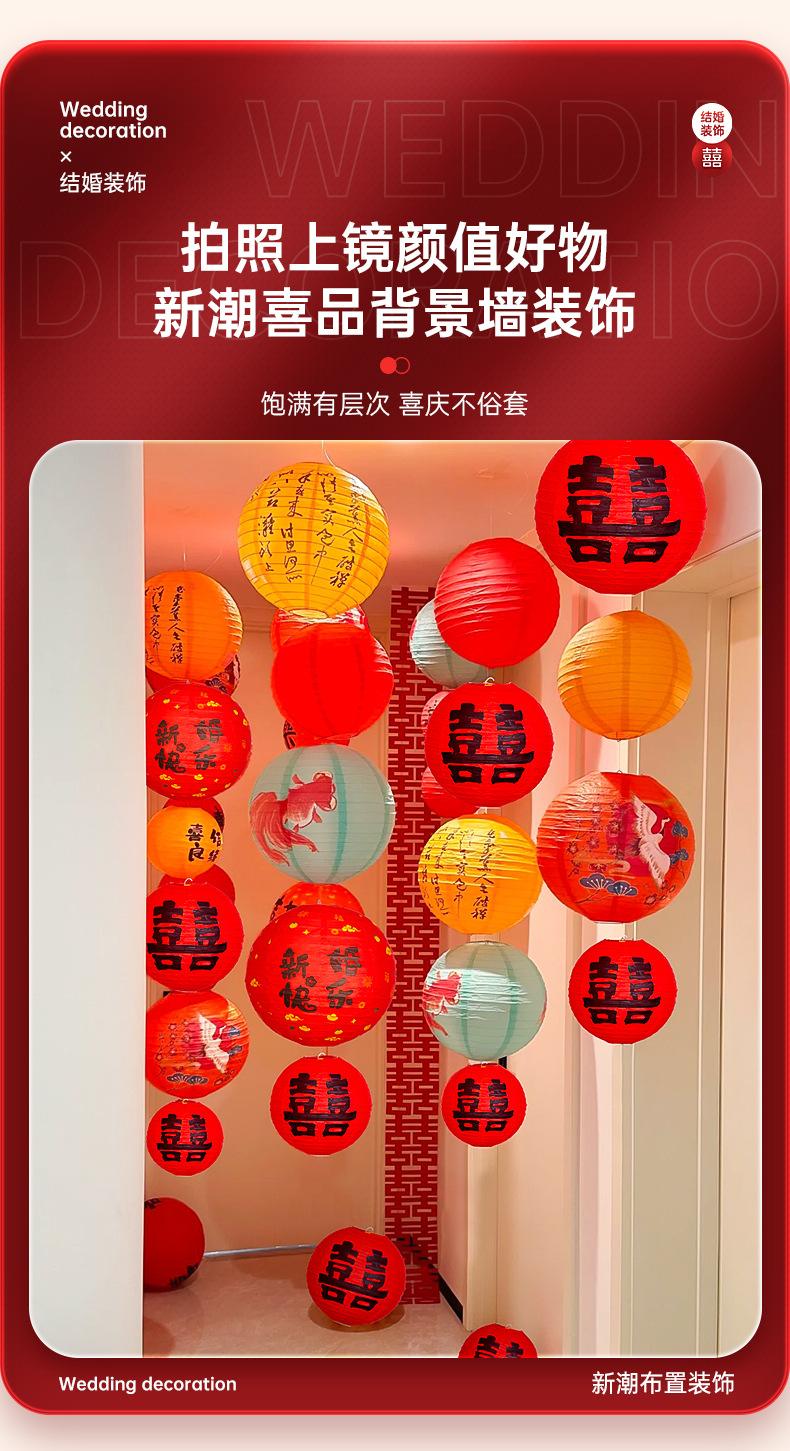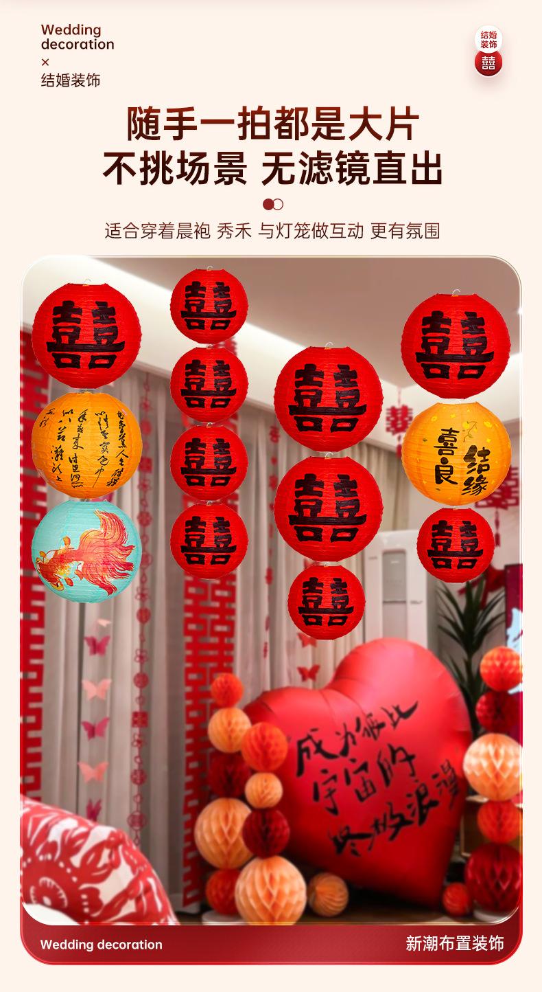 Celebridad de internet nuevo farol de papel hueco techo decoración habitación de bodas lámpara de farol hecha a mano pose creativa boda arreglo de boda boda feliz decoración de cadena de faroles habitación de bodas dormitorio masculino y femenino mesita de noche sala de estar arreglo de boda cascada set de flores para tirar
