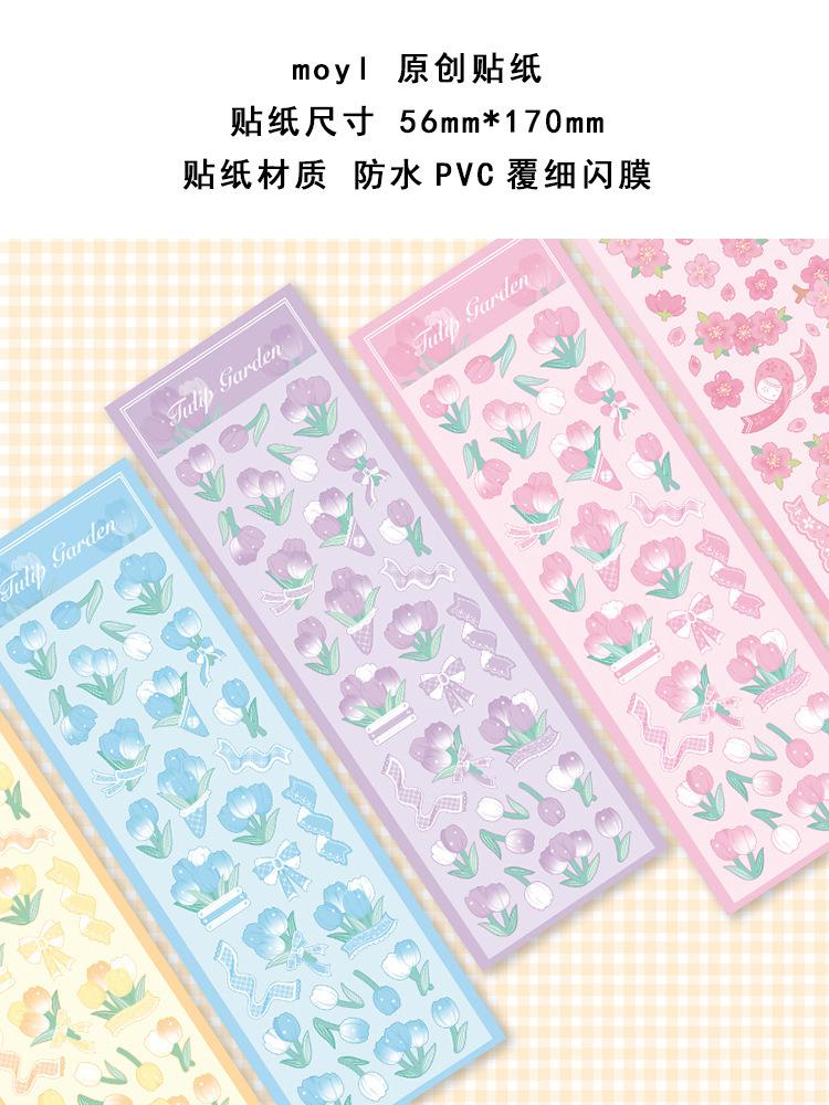 Pegatinas de cuenta de mano impermeables con diseño de flor de tulipán, material artístico vintage para cuenta de mano, taza de agua, patrón decorativo DIY, pegatinas pequeñas