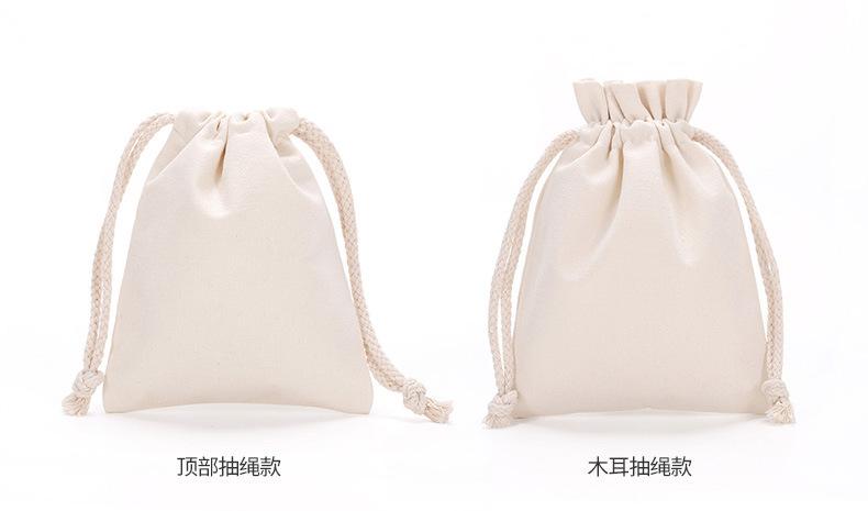 Bolsa de lona en blanco con cordón de algodón, a prueba de polvo, para guardar dulces, arroz, impresión de logotipo, regalo, embalaje manual, venta al por mayor