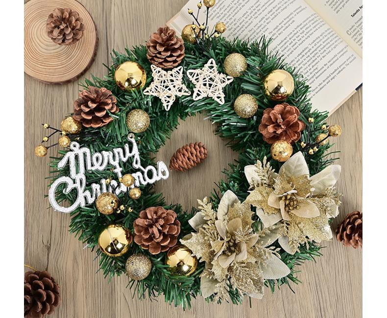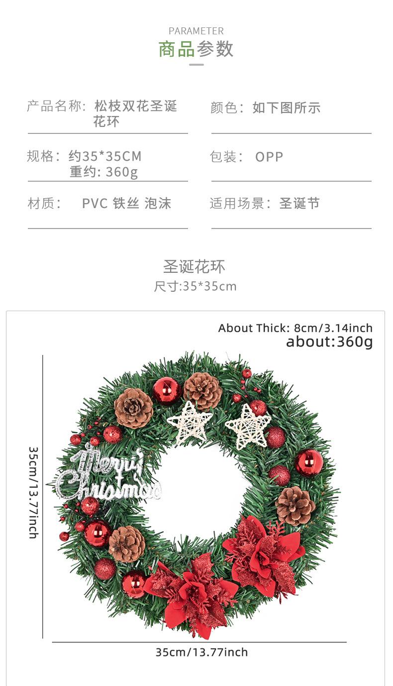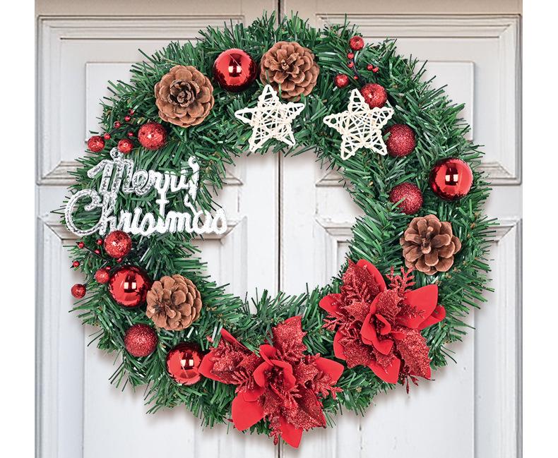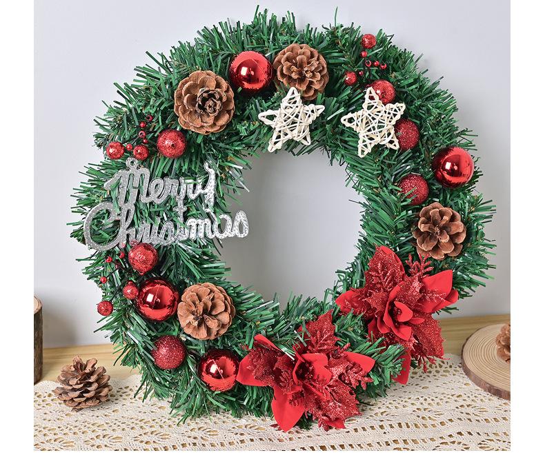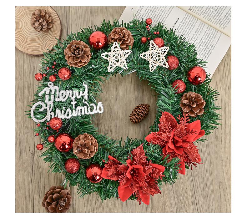 Decoraciones Navideñas Transfronterizas 35cm Guirnalda de Círculo Navideño Decoración Navideña Arreglo Colgante de Puerta de Ratán Corona Navideña