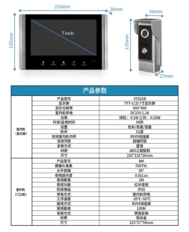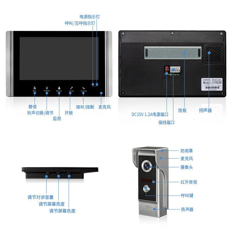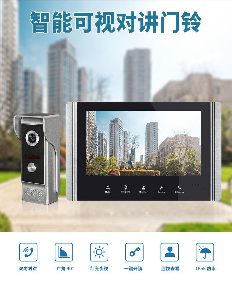 Timbre con intercomunicador visual de 7 pulgadas para villa, directo de fábrica, con desbloqueo con un solo clic, visión nocturna, timbre visual inteligente a prueba de lluvia