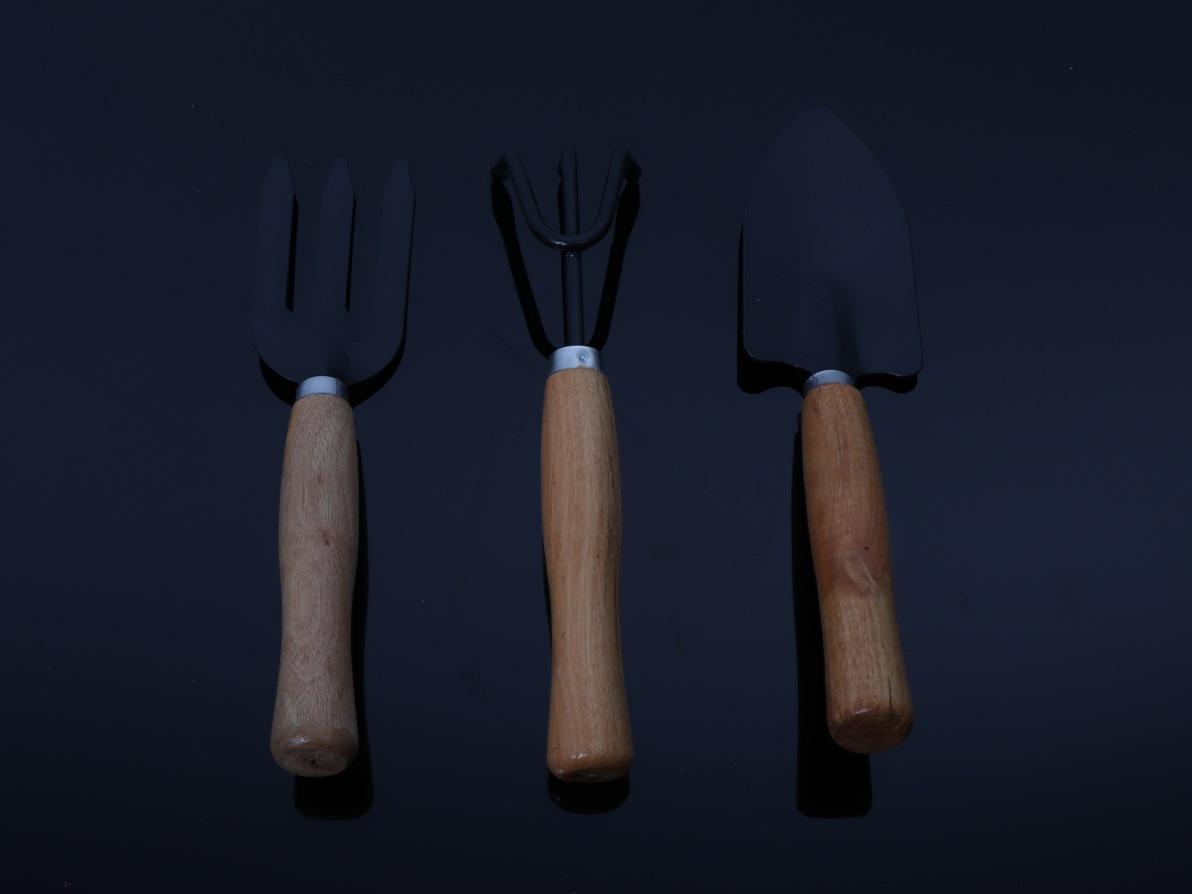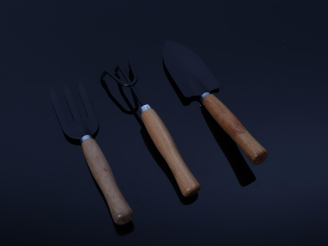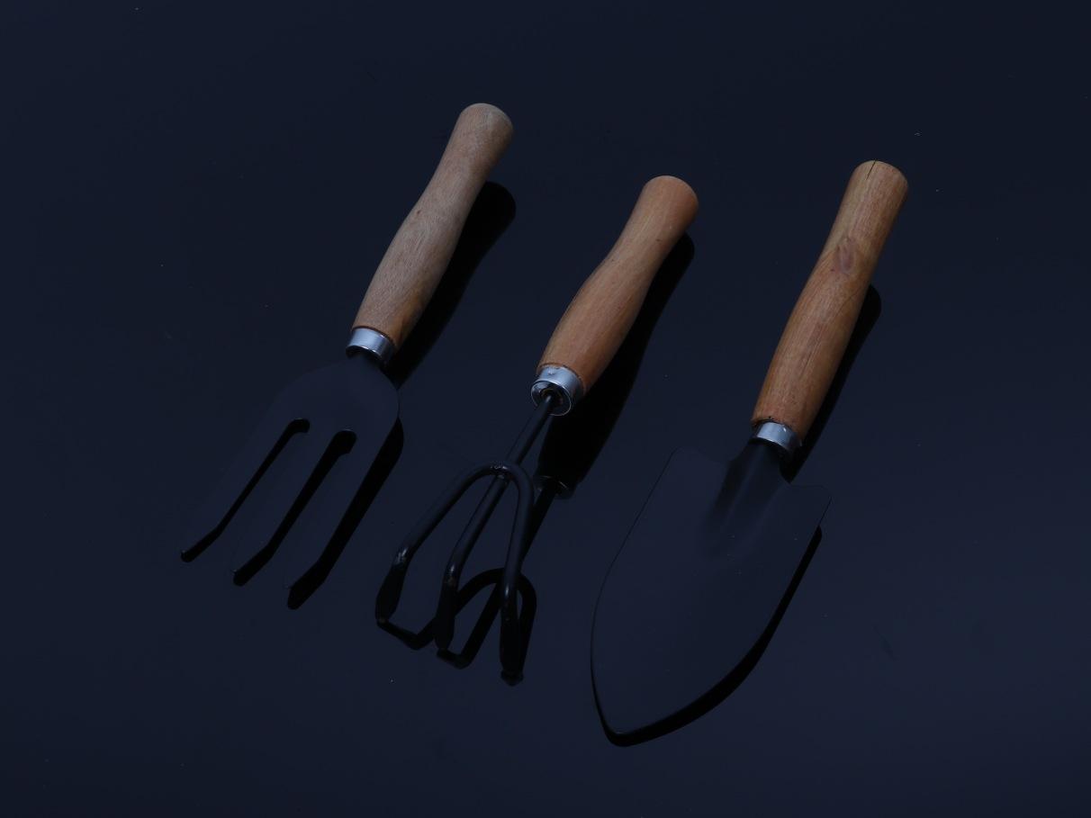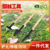 Pala de tres piezas con mango de madera para cavar arena, cavar, jardinería, juego de herramientas, pala familiar para niños, rastrillo aflojador de tierra