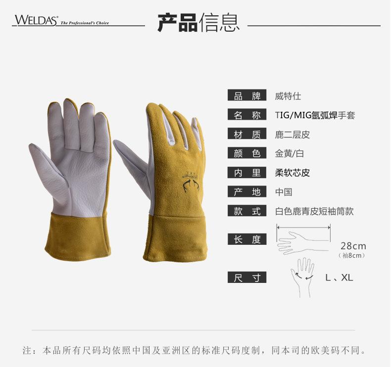 Guantes de Soldadura Weldas Guantes para Soldadura Tig Palma de Piel de Venado Blanca Estilo de Manga Corta Modelo 10-2374