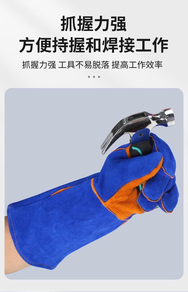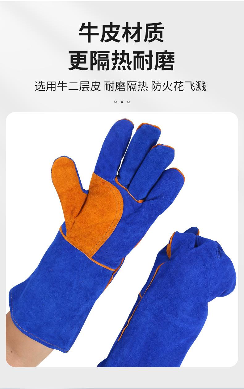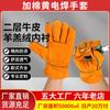 Guantes de protección laboral para soldadores, forro de lona resistente al desgaste, aislamiento térmico de piel de vaca, guantes de soldadura protectores y gruesos.