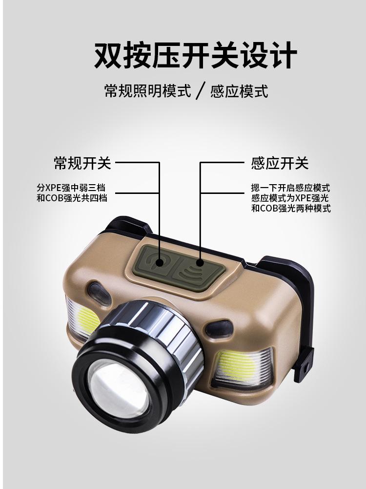 | 【Características】 | Linterna frontal compacta y ligera que se puede ajustar hacia arriba y hacia abajo 30° Con sensor |