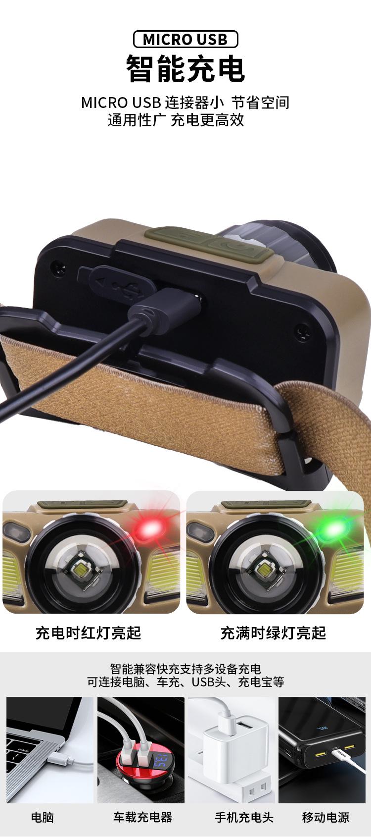 | [El paquete incluye] | Faro+Cinta para la cabeza+Cable de carga USB Negro+Caja de color 200 piezas por artículo |