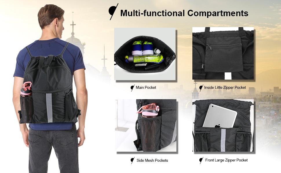 Bolsa Deportiva Casual de Gran Capacidad Transfronteriza Bolsillo con Cordón Grueso Mochila Impermeable Ligera Mochila de Tela Oxford