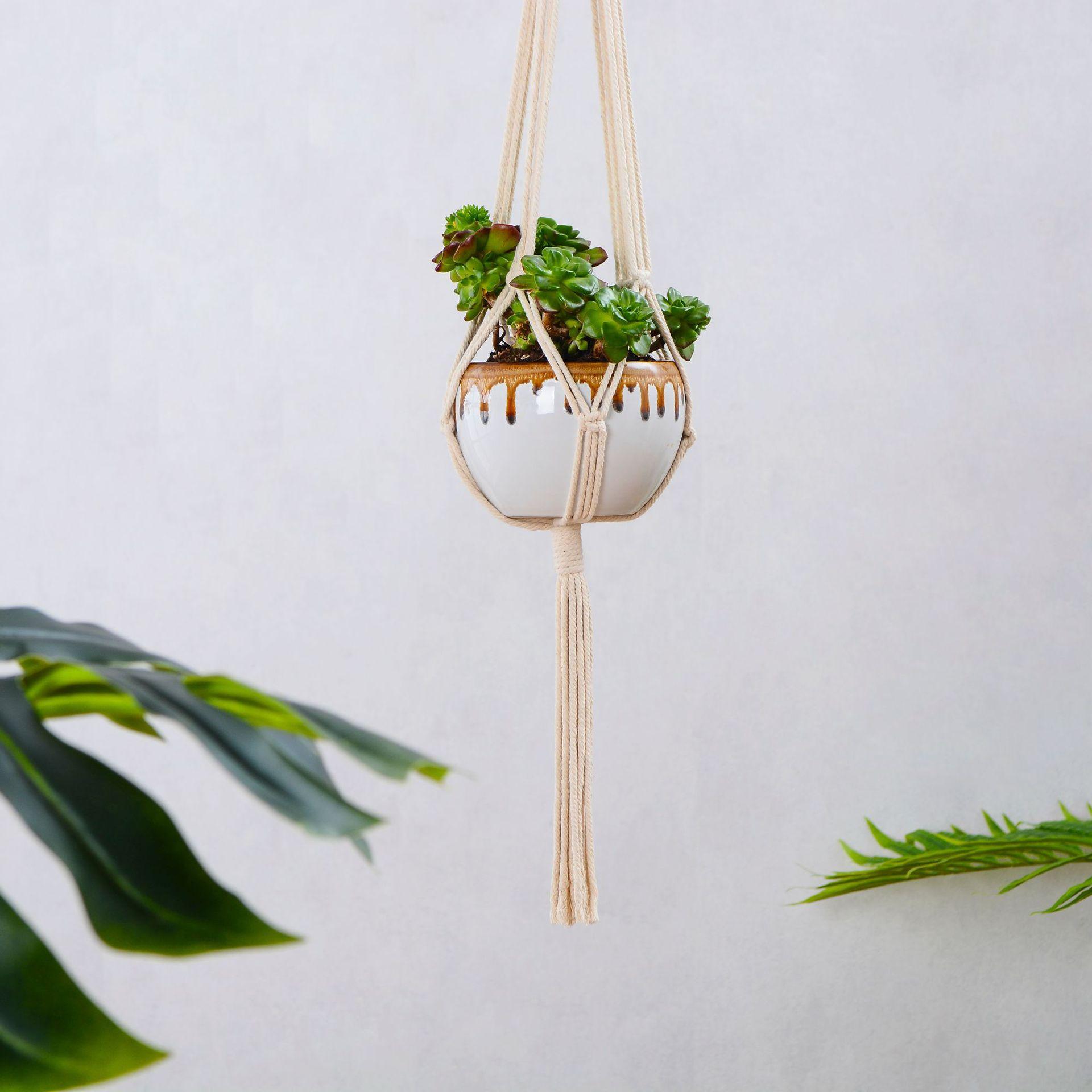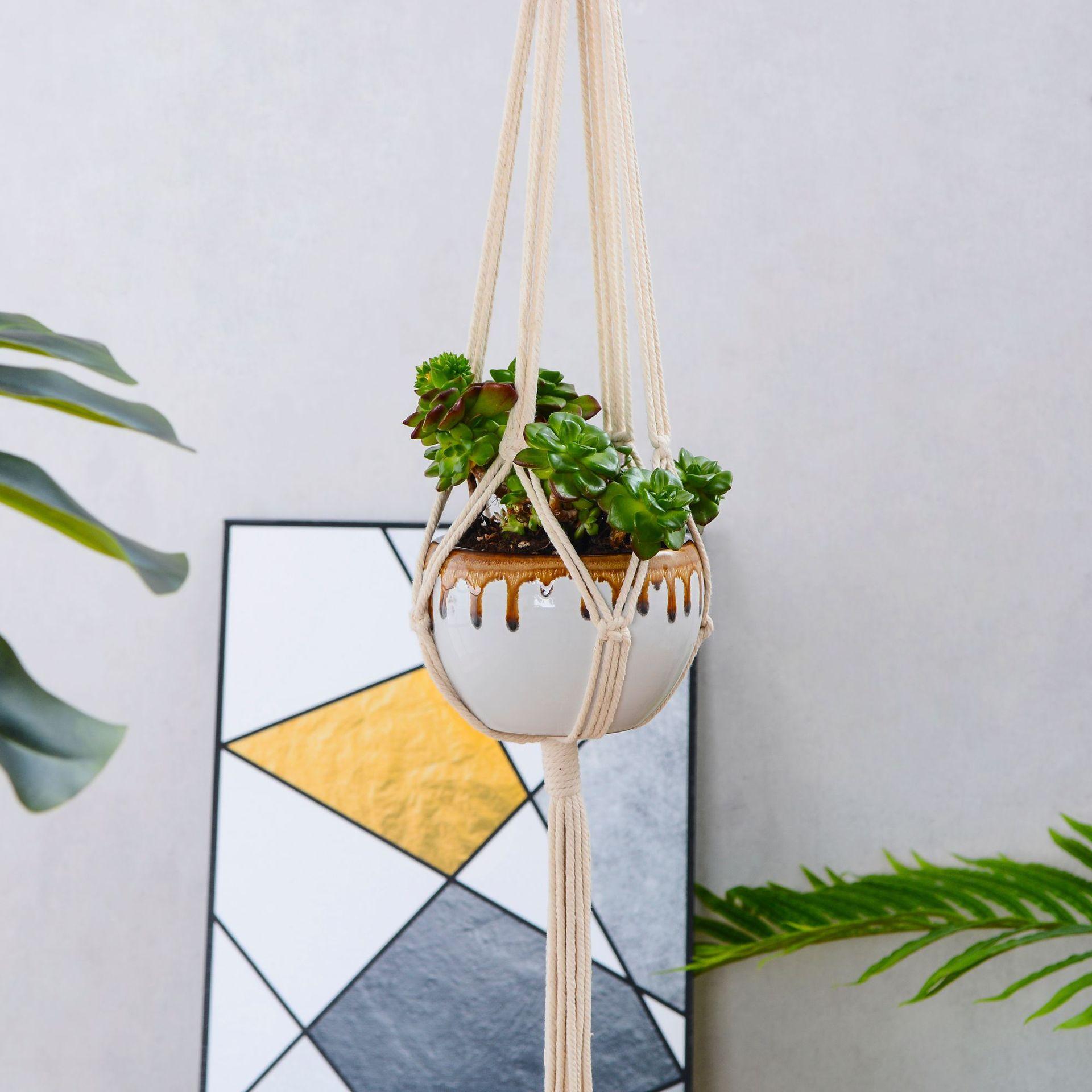 Maceta de jardinería con bolsillo de red, sencilla, tejida a mano, para colgar plantas, para balcón y jardín.