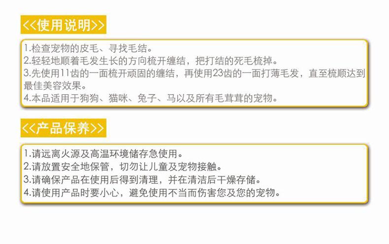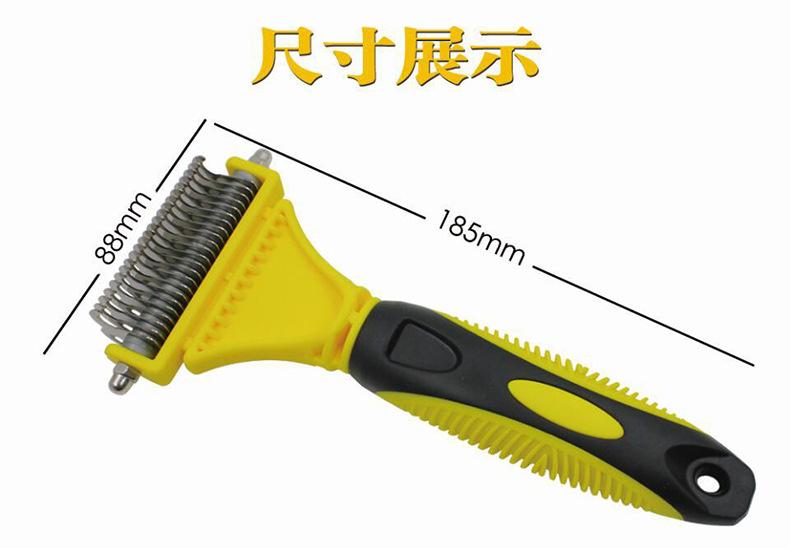 Peine para mascotas al por mayor de fábrica, peine para perros, peine de rastrillo de nudo abierto de doble cara, suministros de belleza para mascotas, peine de depilación anudado de acero inoxidable