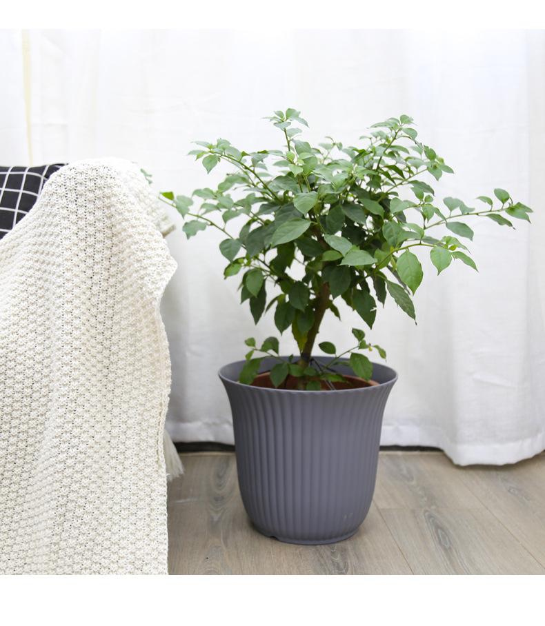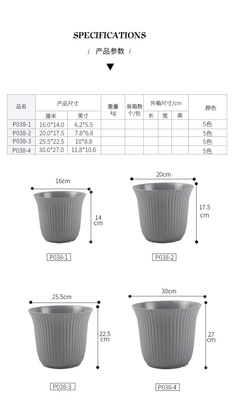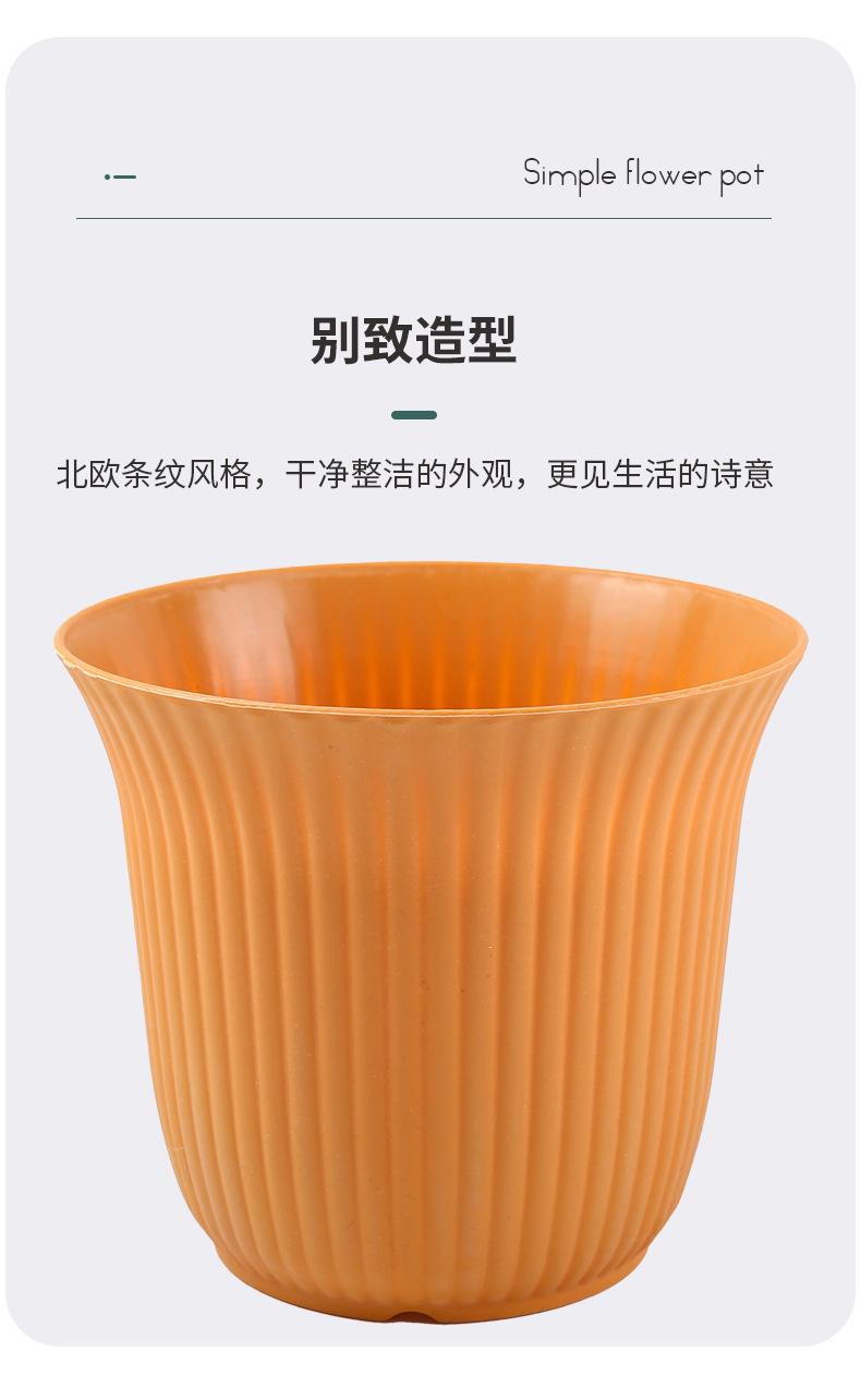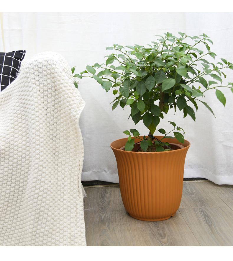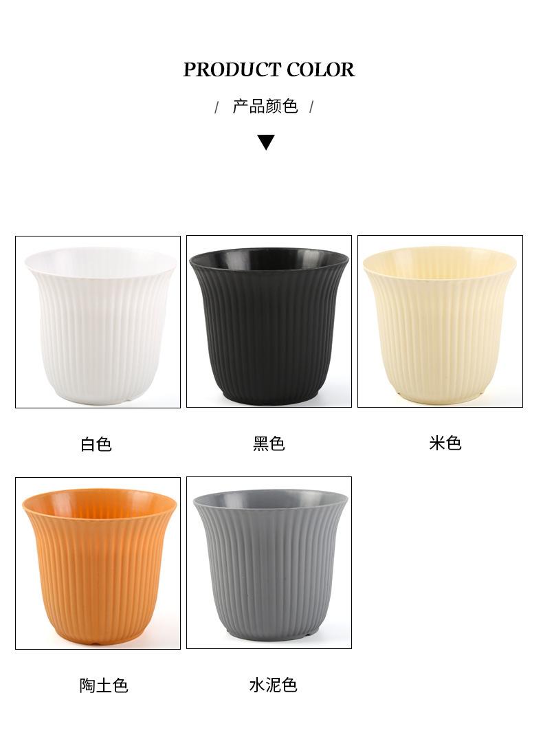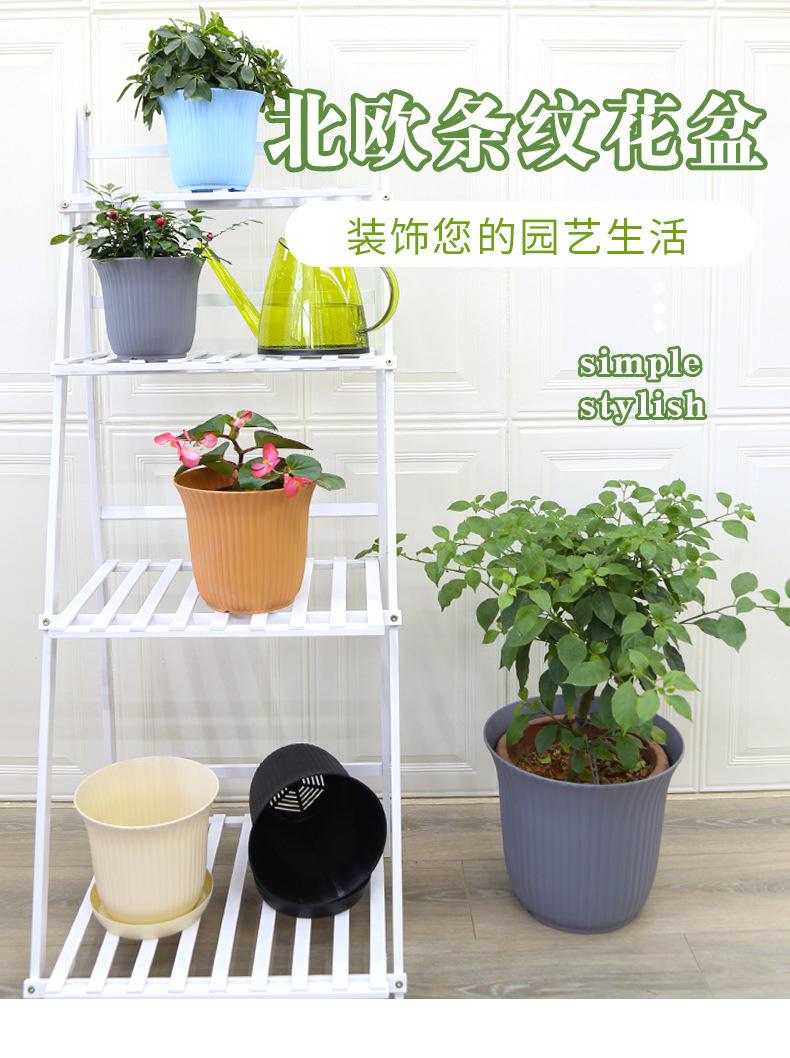 Maceta de plástico redonda grande al por mayor de fábrica con fondo hueco grueso y drenaje con bandeja de rayas verticales para jardín