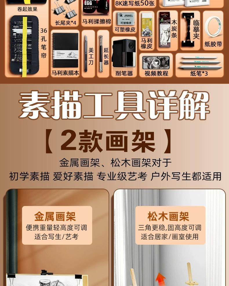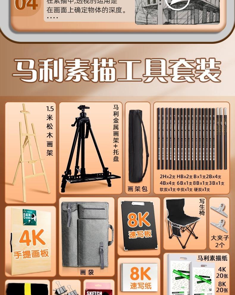 Juego completo de herramientas de dibujo de la marca Marley, venta al por mayor, bloc de dibujo, caballete, suministros de pintura para estudiantes de arte, papel de dibujo, lápiz