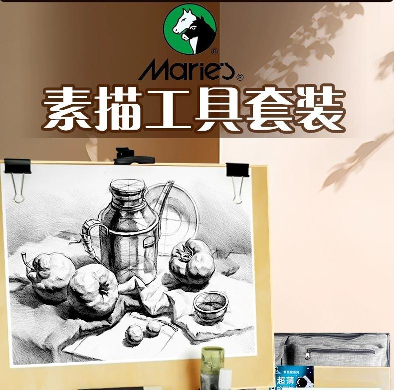 Marley iron box sketch pencil set, Desktop easel + 8k drawing board [pen box style/basic 56 pieces], Marley ea...