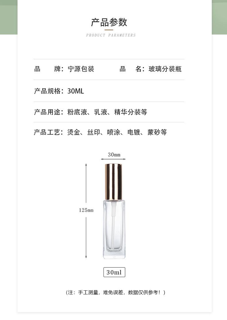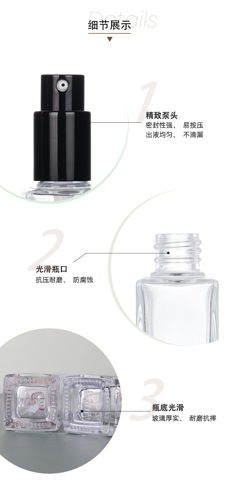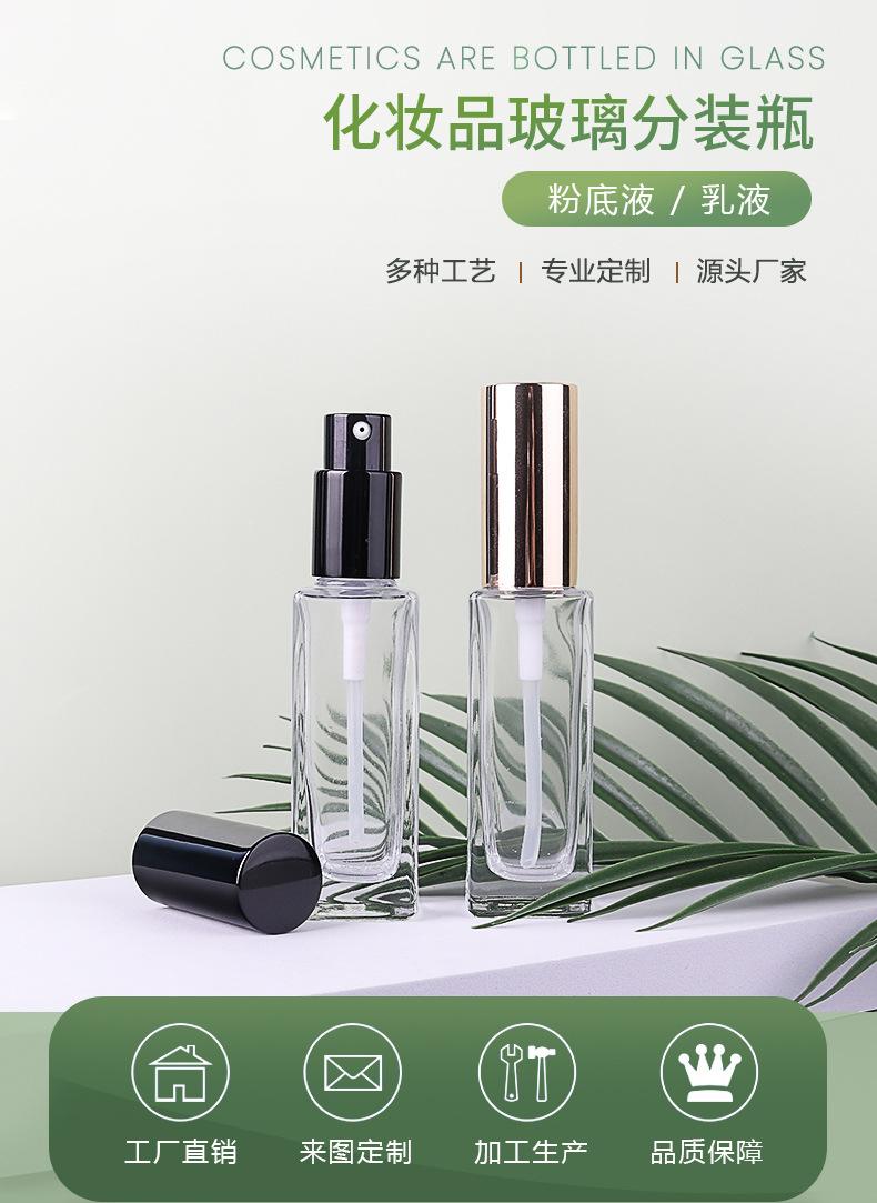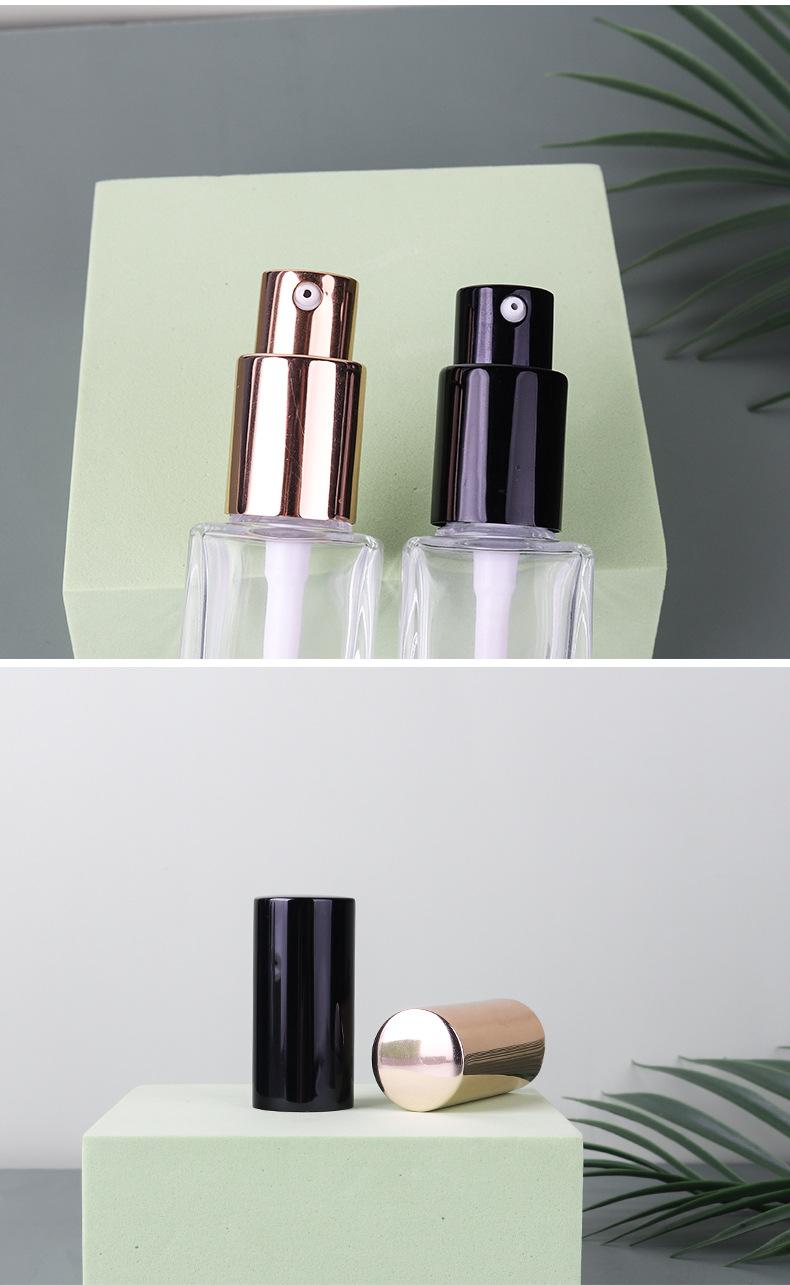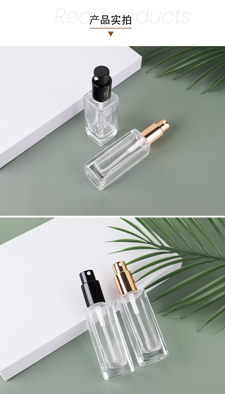 Botella de vidrio rectangular transparente, botella de perfume, botella de spray de agua cosmética, subbotella hidratante, material de embalaje cosmético