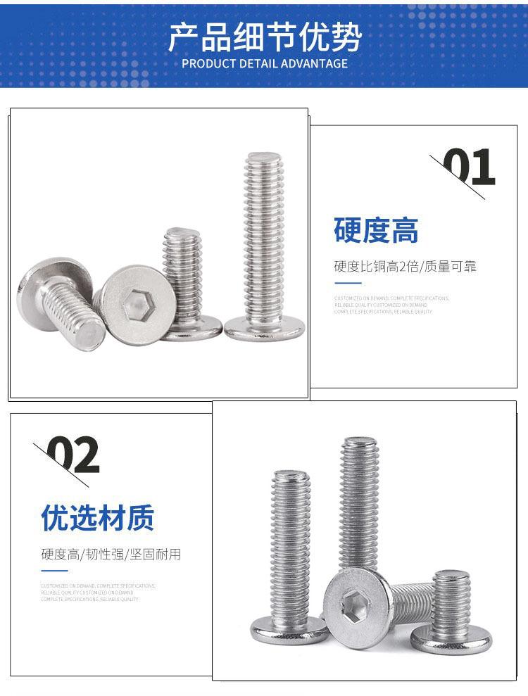 Tornillo de cabeza plana hexagonal de acero inoxidable 304, cabeza fina, M2, M2.5, M3, M4, M5, M6-M12