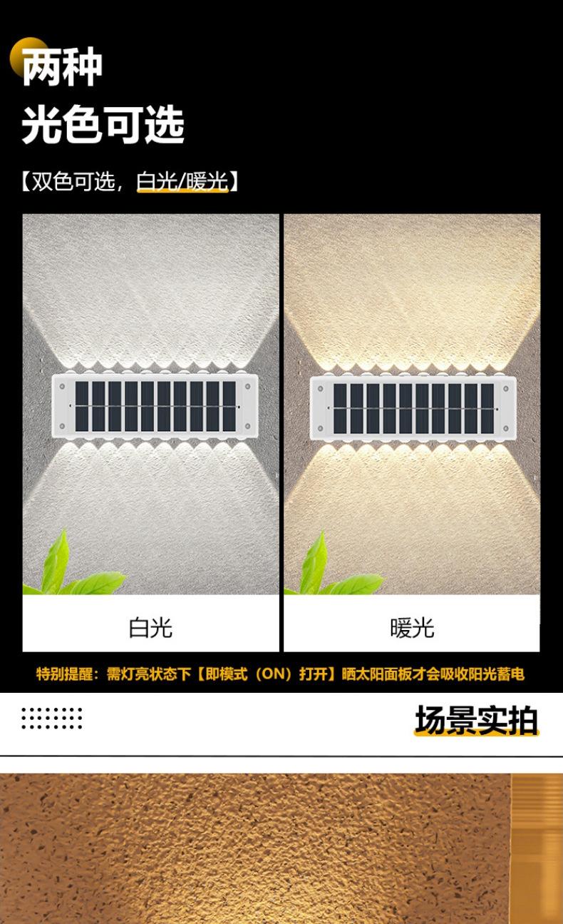 Lámpara de Pared Exterior Solar Lavador de Pared Impermeable Exterior Jardín Villa Lámpara de Pared Patio Rural Balcón Luz de Ambiente