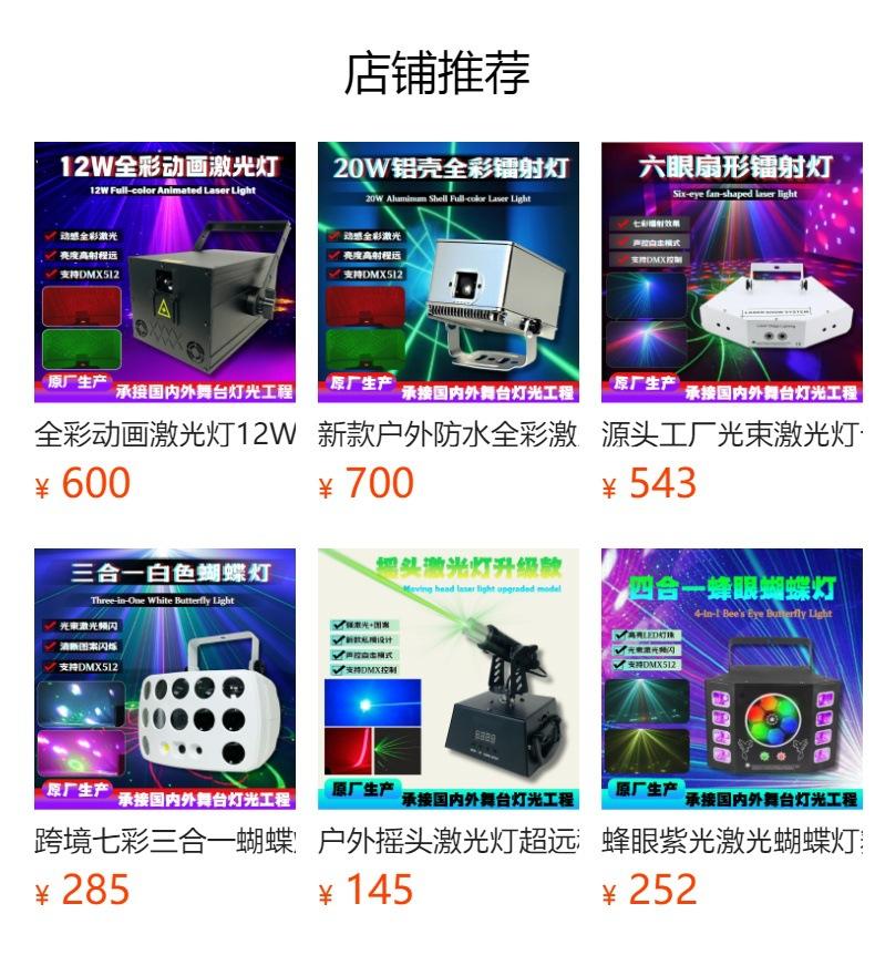 ¡Bienvenidos a nuestra tienda! Gracias por su atención y por su compra. Todos los productos se venden directamente de fábrica, con alta calidad y precios bajos, integridad y un servicio atento. Ofrecemos producción personalizada según las necesidades del cliente, lotes mixtos y entregas de una sola pieza. ¡Bienvenidos a visitar la sala de exposiciones para obtener orientación! Luces de escenario, máquinas de nieve, máquinas de niebla, luces láser y luces de efectos: ¡los esperamos!