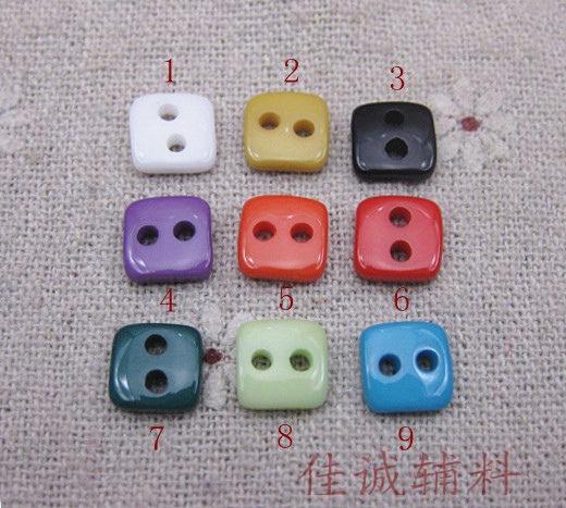 Características:Botón de resina, cuadrado media bola, 16#2 agujeros.