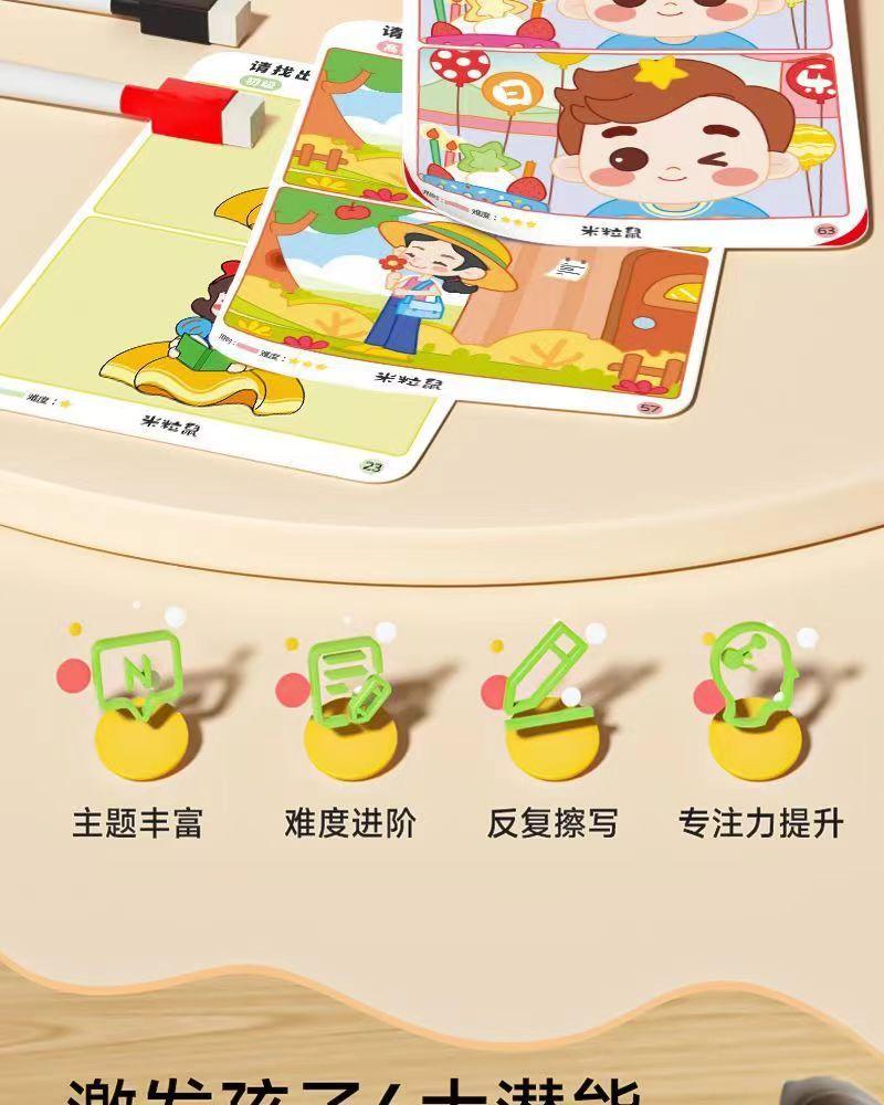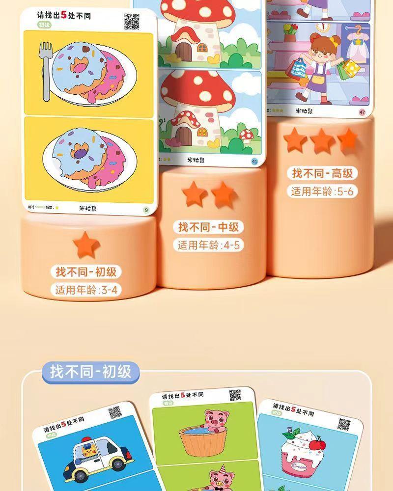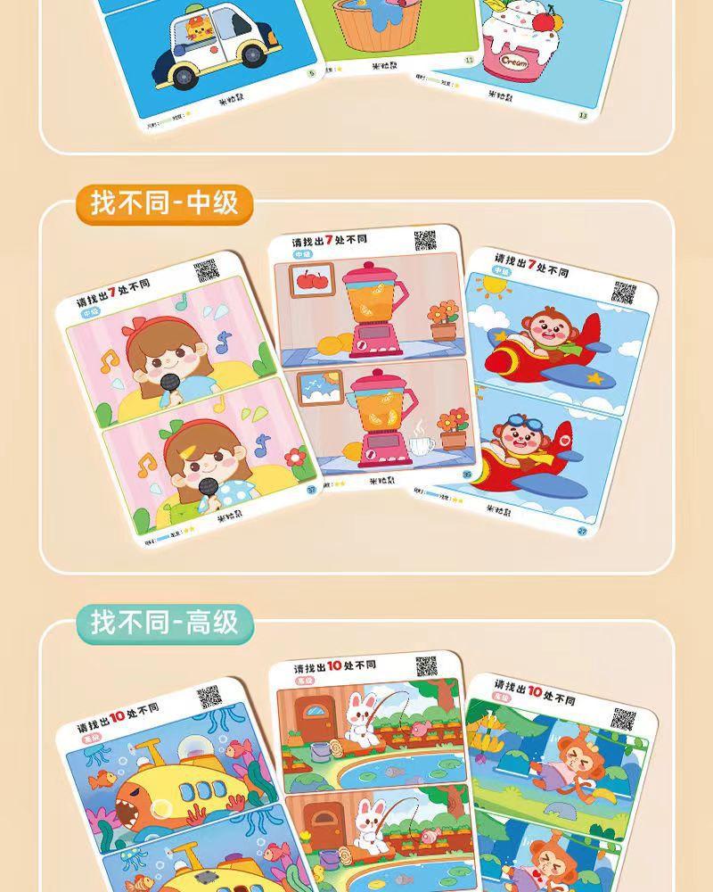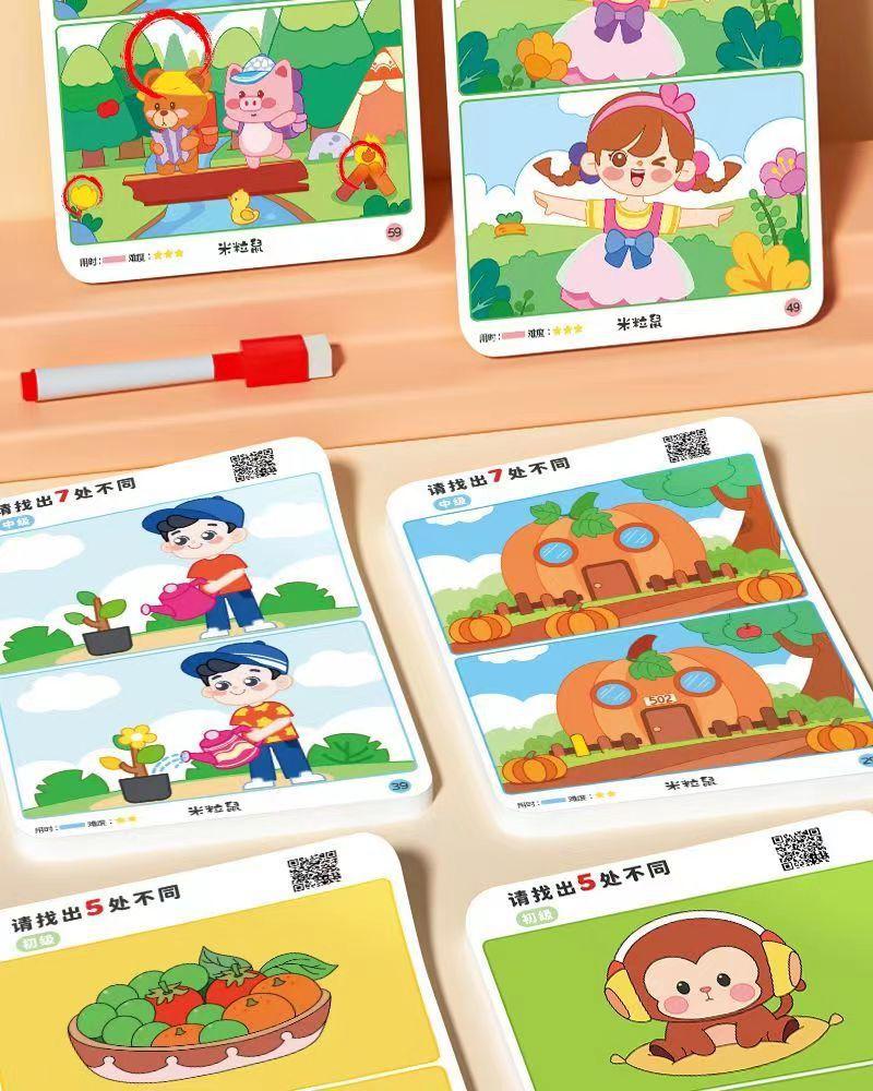 Concéntrese en encontrar diferentes juegos educativos divertidos de entrenamiento de observación para niños, tarjetas para desarrollar la inteligencia del cerebro completo y juguetes.