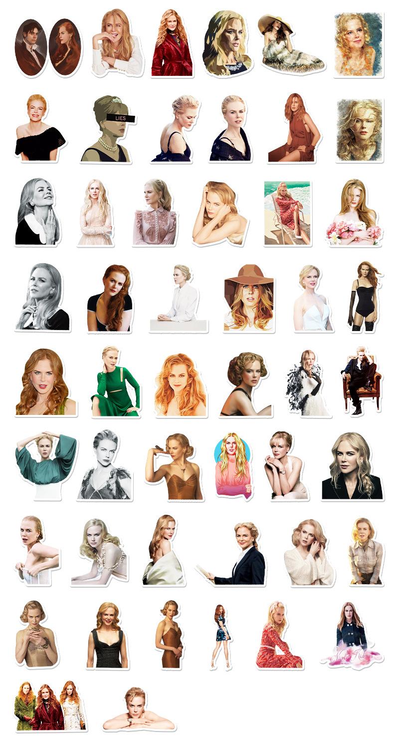 50 pegatinas decorativas para el coche, diseño de la actriz Nicole Kidman, para el cuaderno, para decorar el maletero o el scooter.