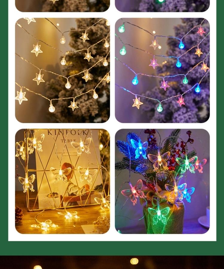 Luces LED de colores, luces decorativas para exteriores, cadena de luces de colores para diseño de jardín, luces decorativas navideñas, luces de colores llenas de estrellas, cadena de luces desnudas