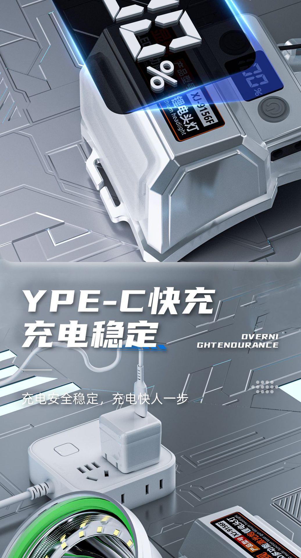 XJ-9156F integrated flood light with output induction LCD display with tail light battery life 8-10 hours