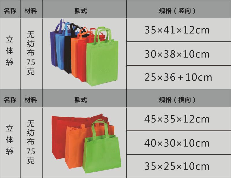 Bolsa tridimensional no tejida bolsa de compras de punto bolsa de película bolsa de lona portátil de color impresión de logotipo impresión publicitaria