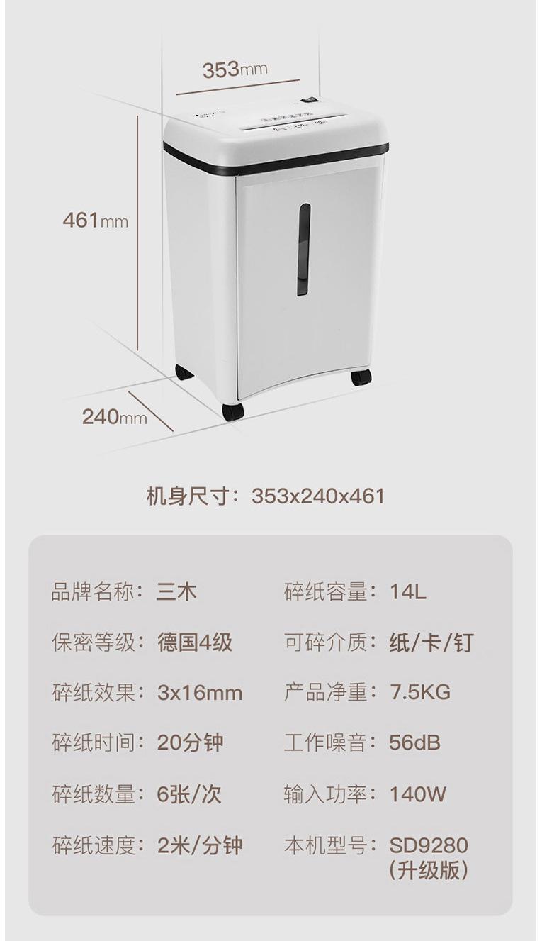 Destructora de Oficina Eléctrica Sunwood Sd9280 Destructora Doméstica Blanca