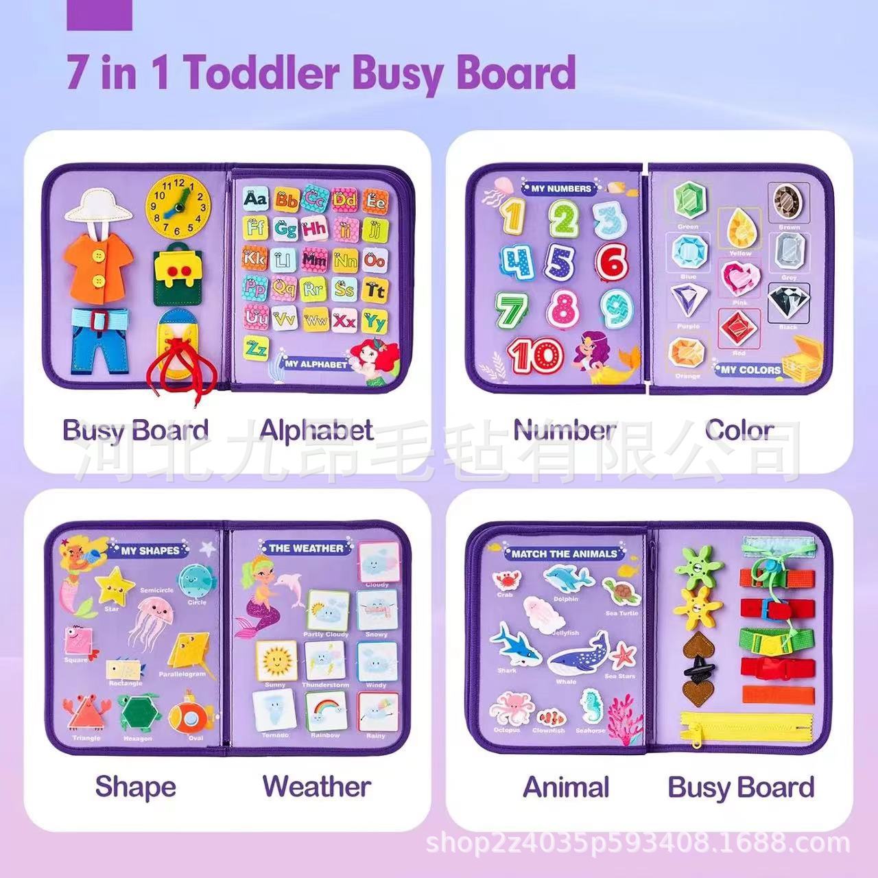 Tablero de aprendizaje de fieltro transfronterizo, nuevo, para educación temprana de niños, desarrollo de inteligencia, rompecabezas, tablero de fieltro morado, tablero ocupado