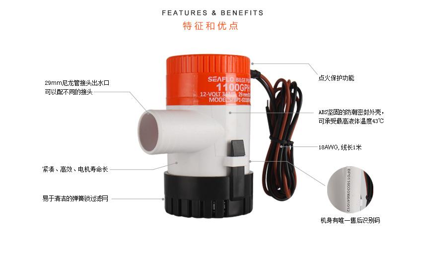 | SFBP2-G1100-01 | 1100 GPH | 24 voltios | 4.0 A | - | 4,8 metros | 1 metro | 29 mm/1-1/8" | 0,38/0,44 kilogramos |
