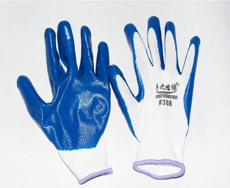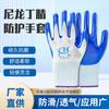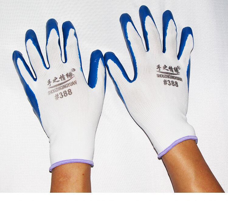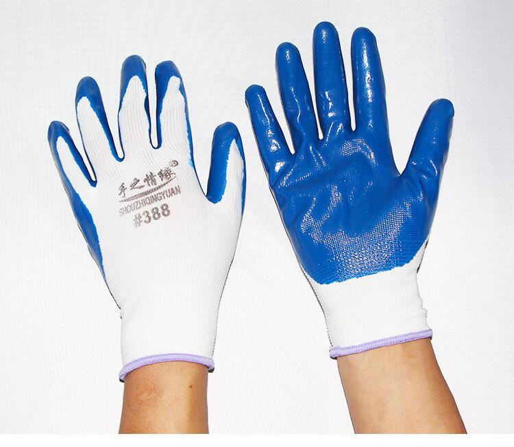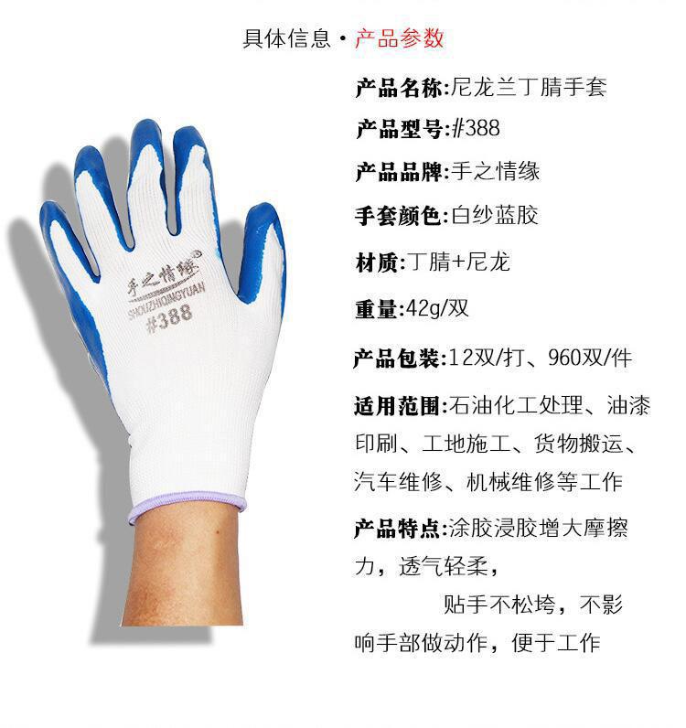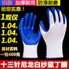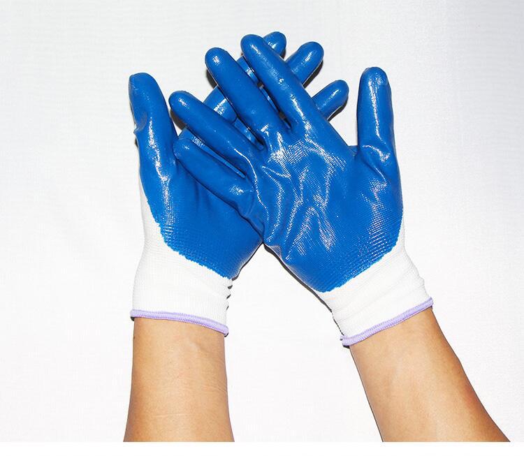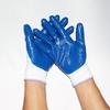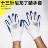 Guantes de nitrilo de trece agujas, de nailon engrosado, con pegamento sumergido, para protección laboral, de hilo blanco, color azul Ding Qing.