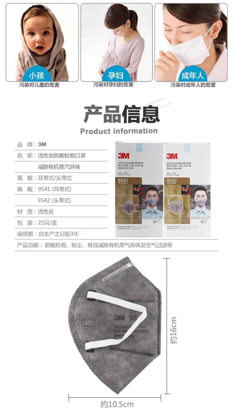 Mascarilla 3M 9542/9541 KN95 a prueba de polvo partículas polvo de escape olor decoración mascarilla de carbón activado