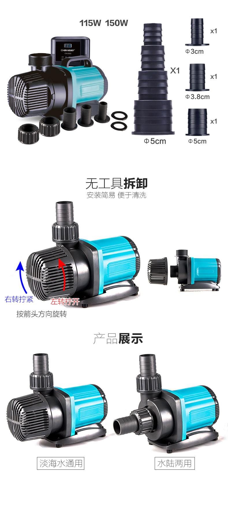 Bomba de agua para pecera, silenciosa, sumergible, pequeña, de succión de fondo, bomba de circulación anfibia, bomba de agua de frecuencia variable