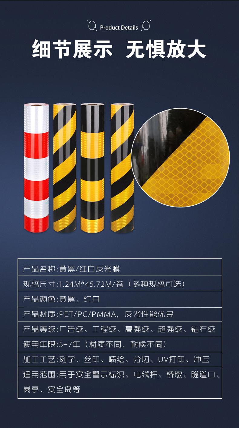 Pegatinas reflectantes de tráfico acrílicas directas de fábrica, cinta de advertencia reflectante anticolisión, película reflectante de sarga roja y blanca de alta velocidad