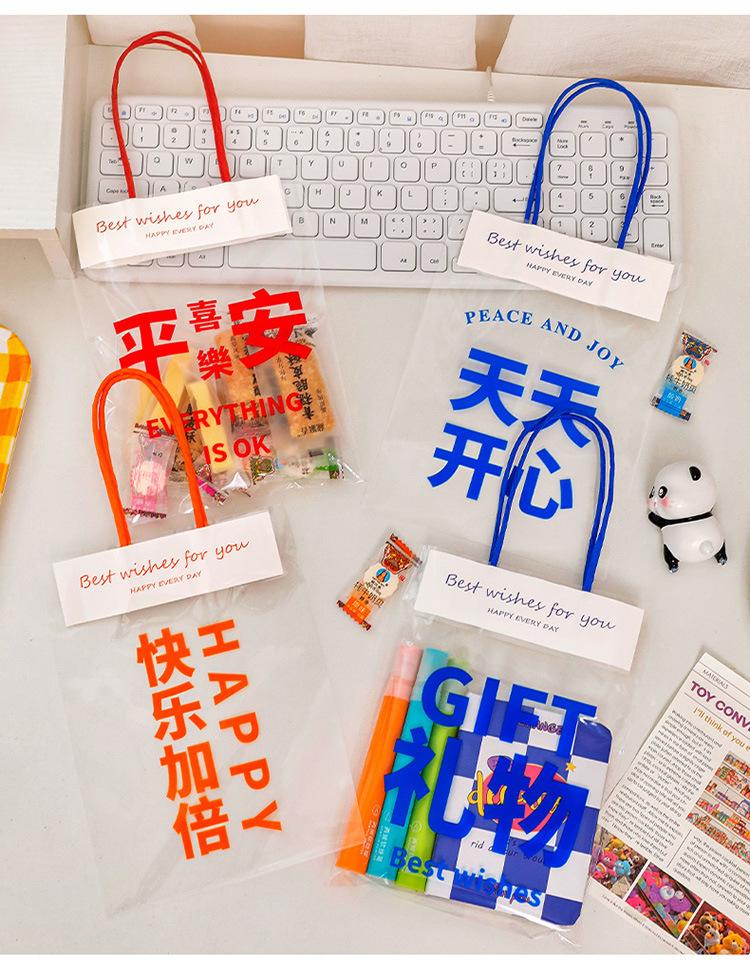 Bolsa de Regalo para el Día del Niño Dibujos Animados Transparente Texto Bolso de Mano Bolsa de Regalo para Niños Bolsa de Regalo Linda para Snacks