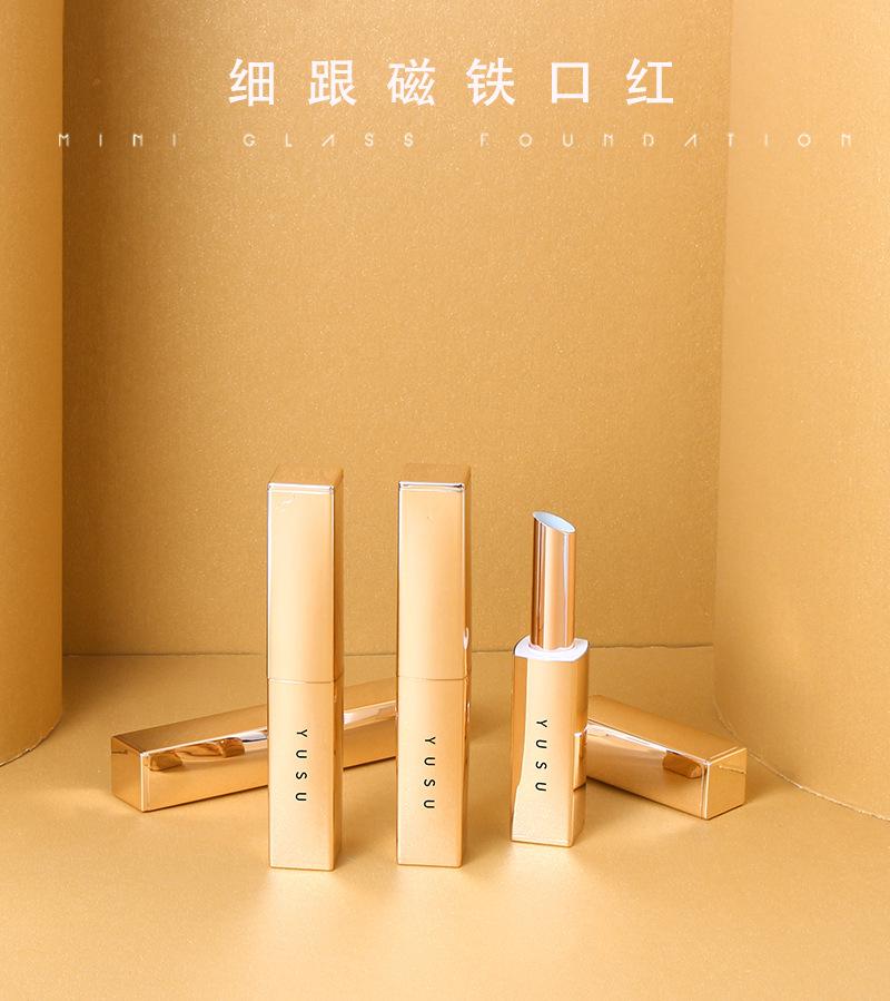 Nueva ventosa magnética pequeña y delgada. Con tubo de lápiz labial, tubo vacío, 1,8 g, textura metálica cuadrada, boca oblicua, maquillaje, bálsamo labial, material de embalaje