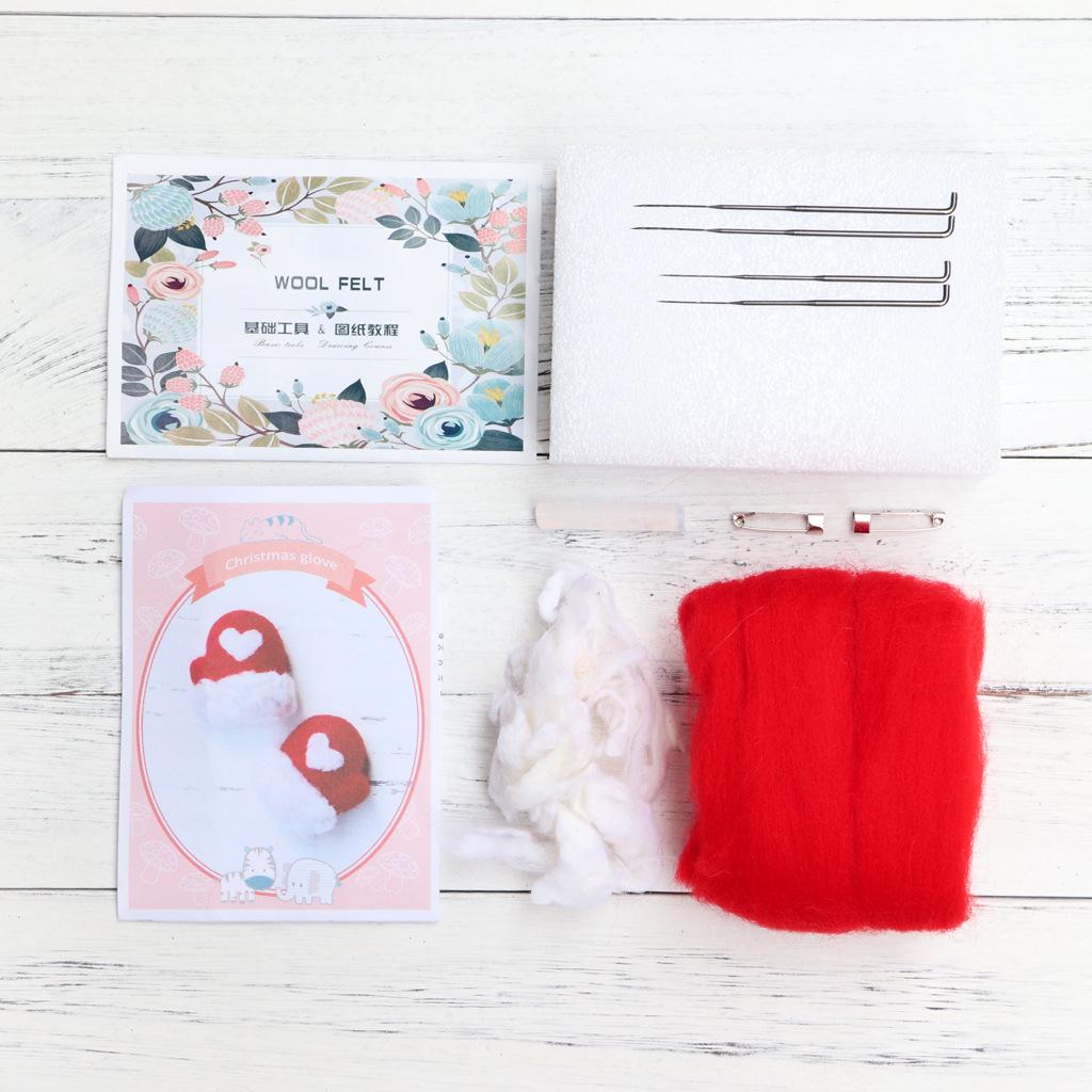 Banco de trabajo de espuma (11.5*8.5*3cm) + 4 agujas de fieltrar (2 medianas y 2 finas), dibujos básicos, dibujos correspondientes de paquetes de materiales, lana 66s;