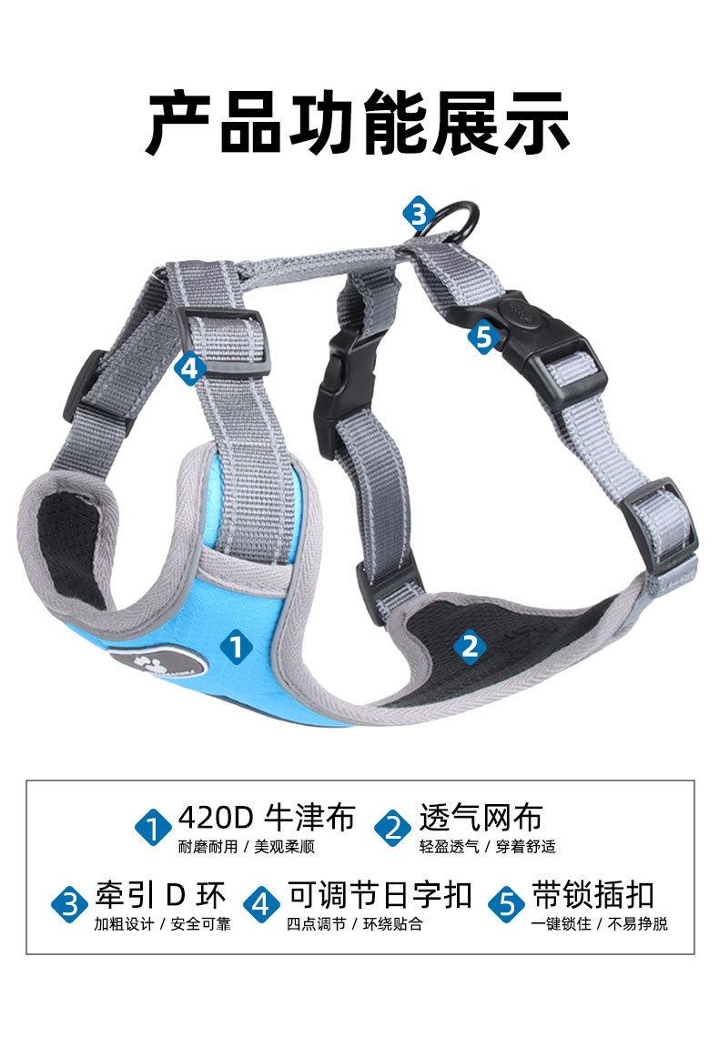 Chaleco para perros con correa pectoral, cuerda de tracción, resistente a explosiones, reflectante, antipérdida, venta al por mayor de artículos para mascotas