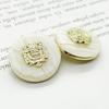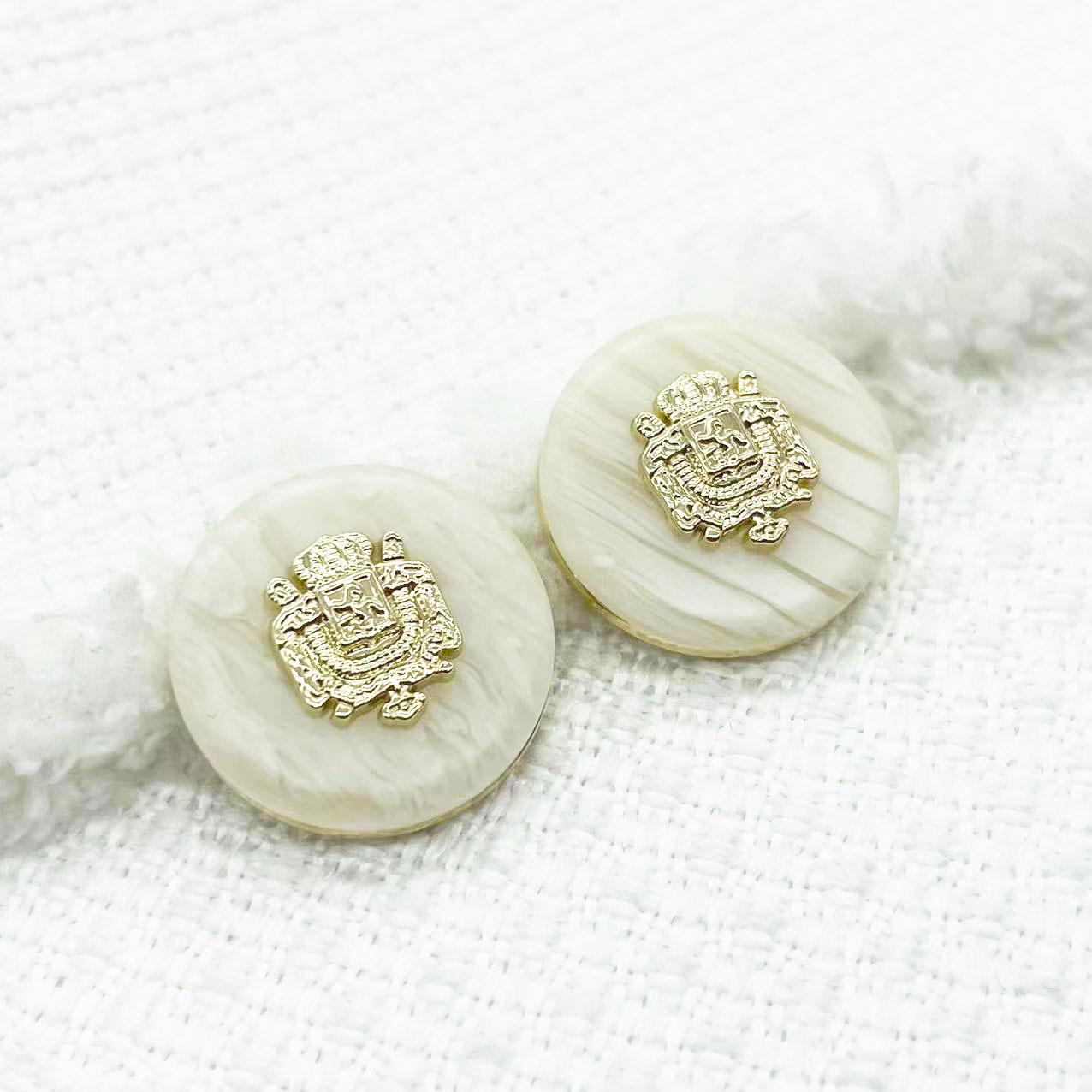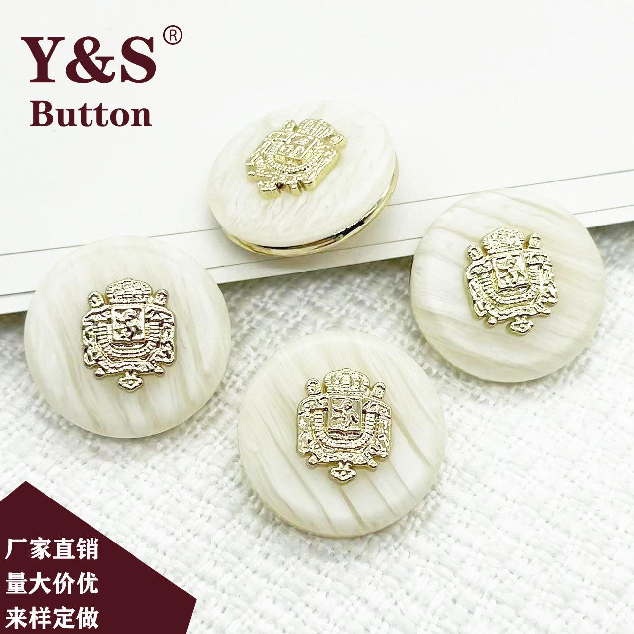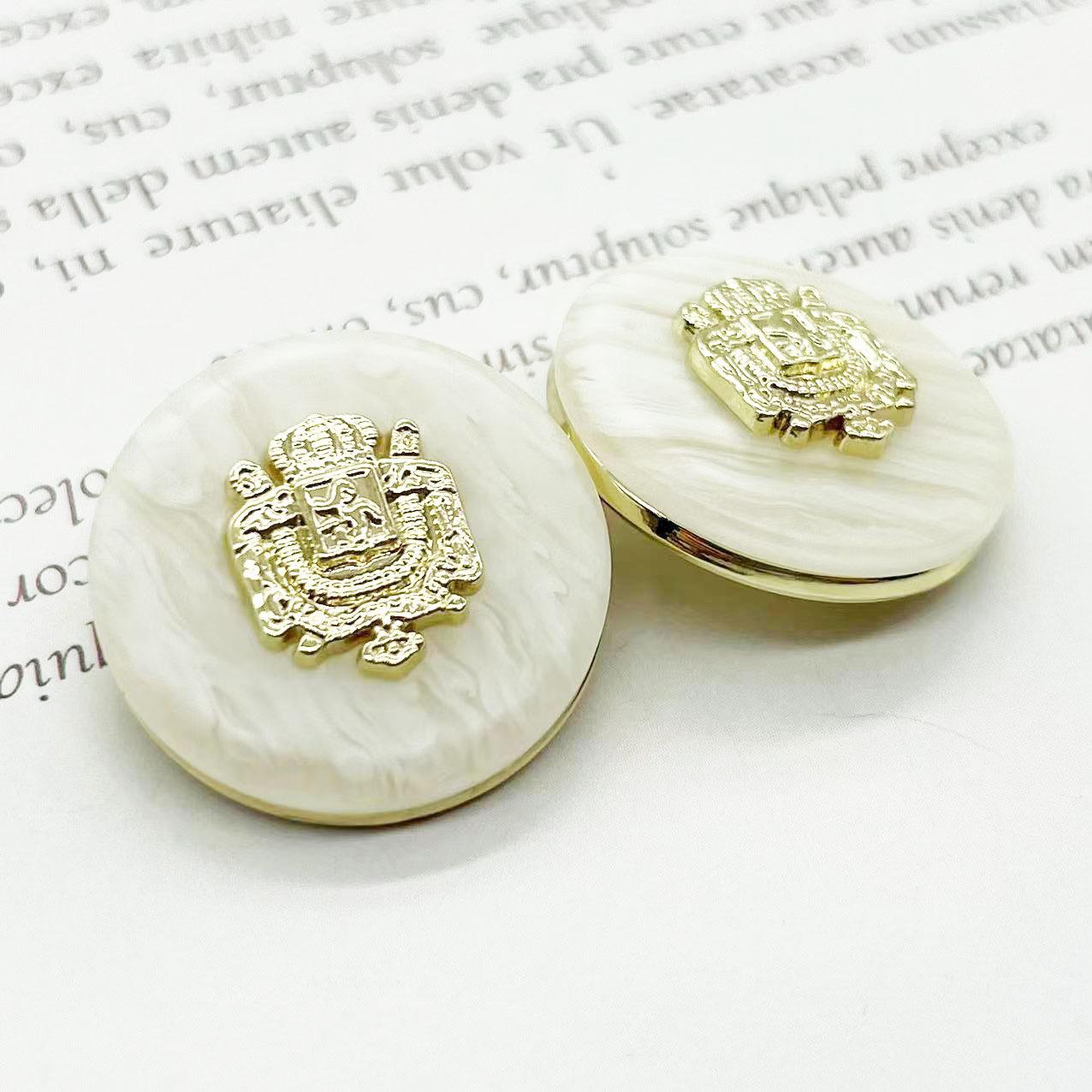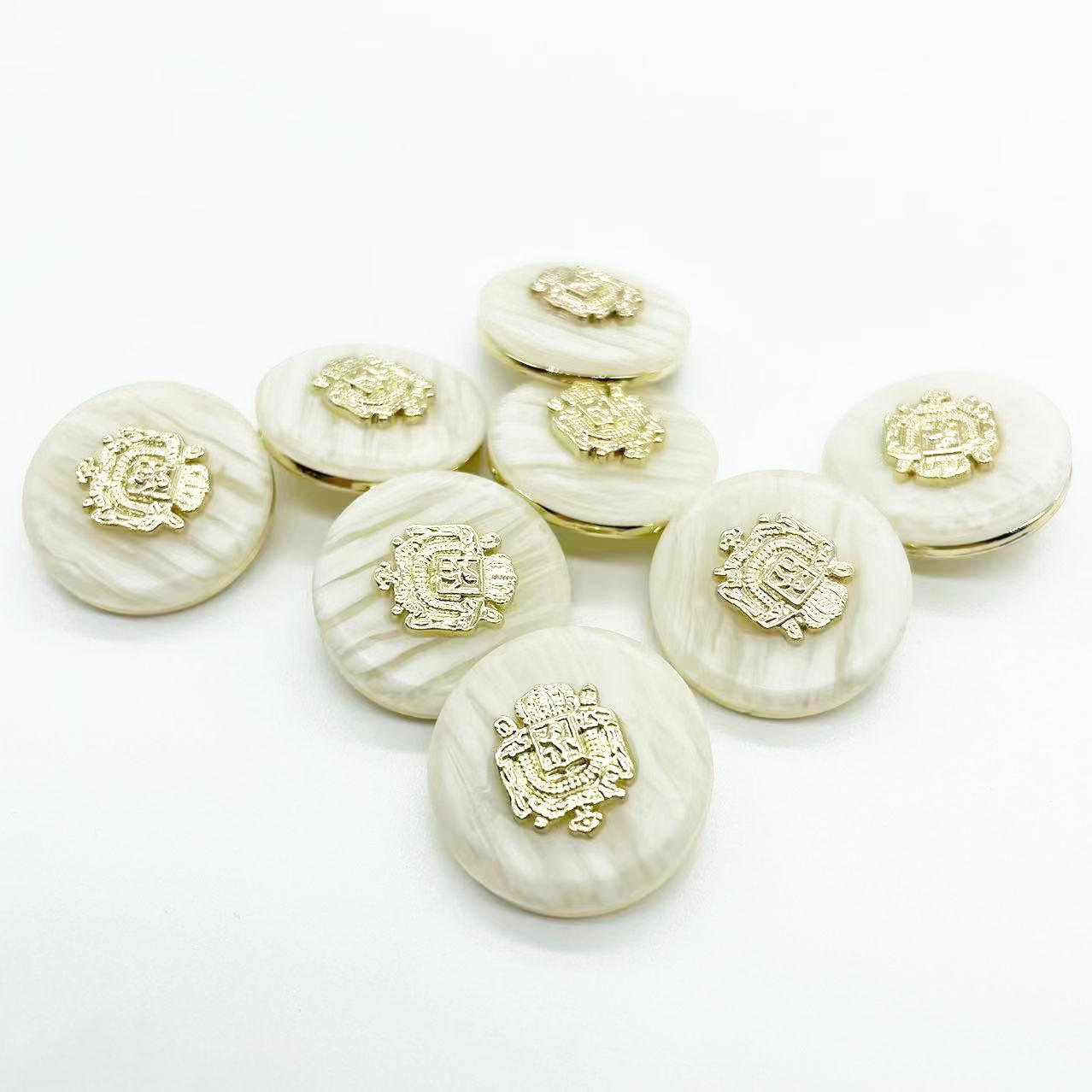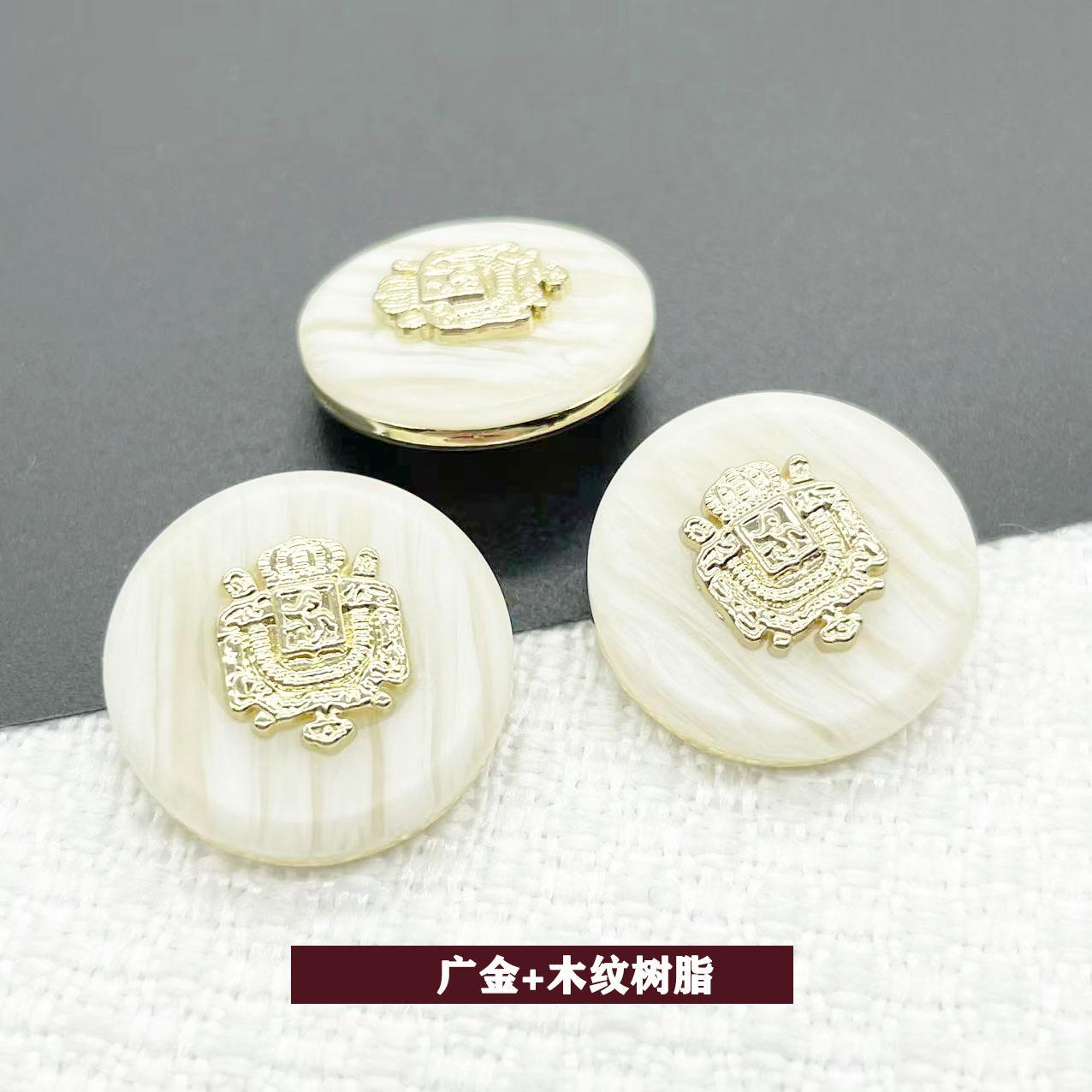 Botón decorativo con hebilla de combinación de resina y metal, con rayas de color blanco roto y veta de madera, para abrigo, traje, cárdigan, tapeta, accesorios.