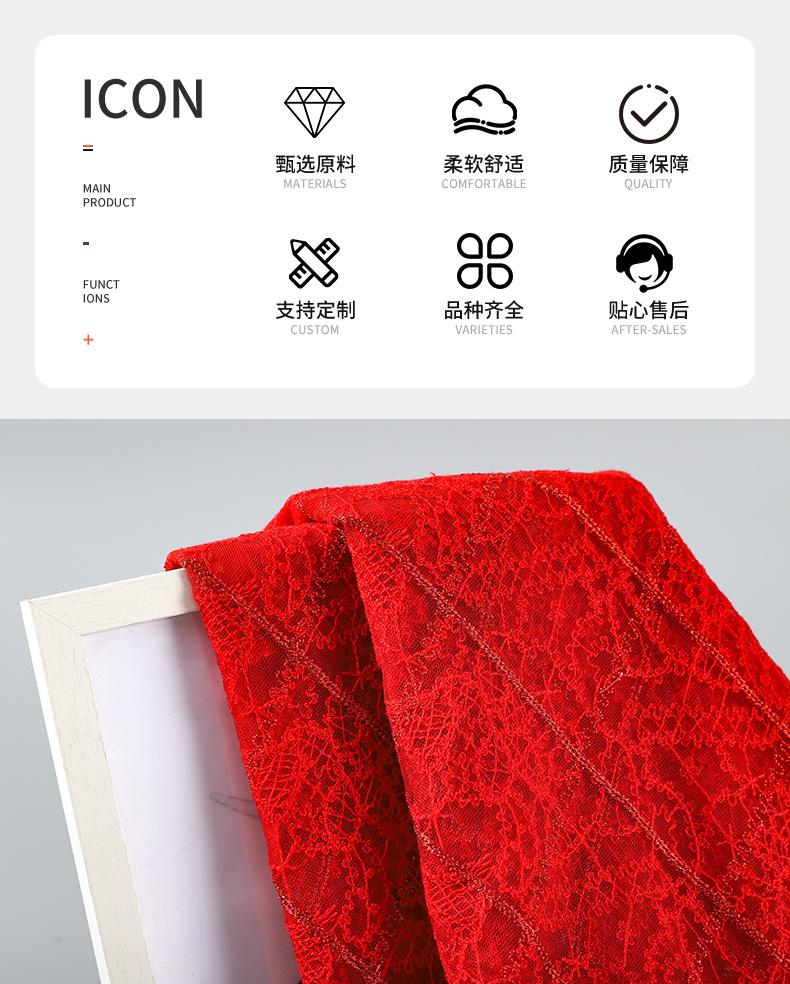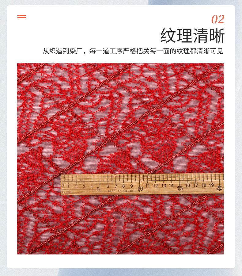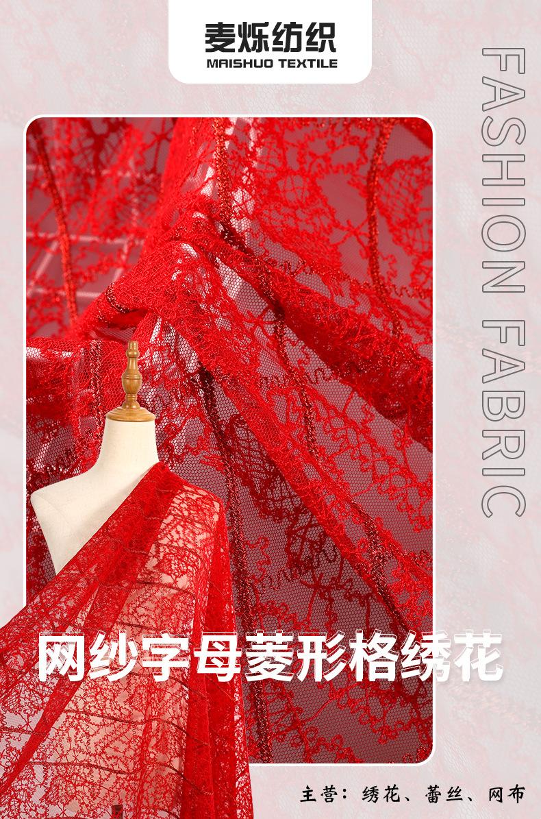 Nuevo Poliéster Rombos Malla Calada Tela Bordada Vestido de Boda Rojo Vestido de Corte Alto Tela Bordada de Encaje