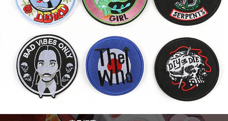 Insignia redonda de tela Zhang Zi bordada por computadora, accesorios para ropa, insignias para sombreros, parches adhesivos traseros, pegatinas decorativas de tela bordada para ropa