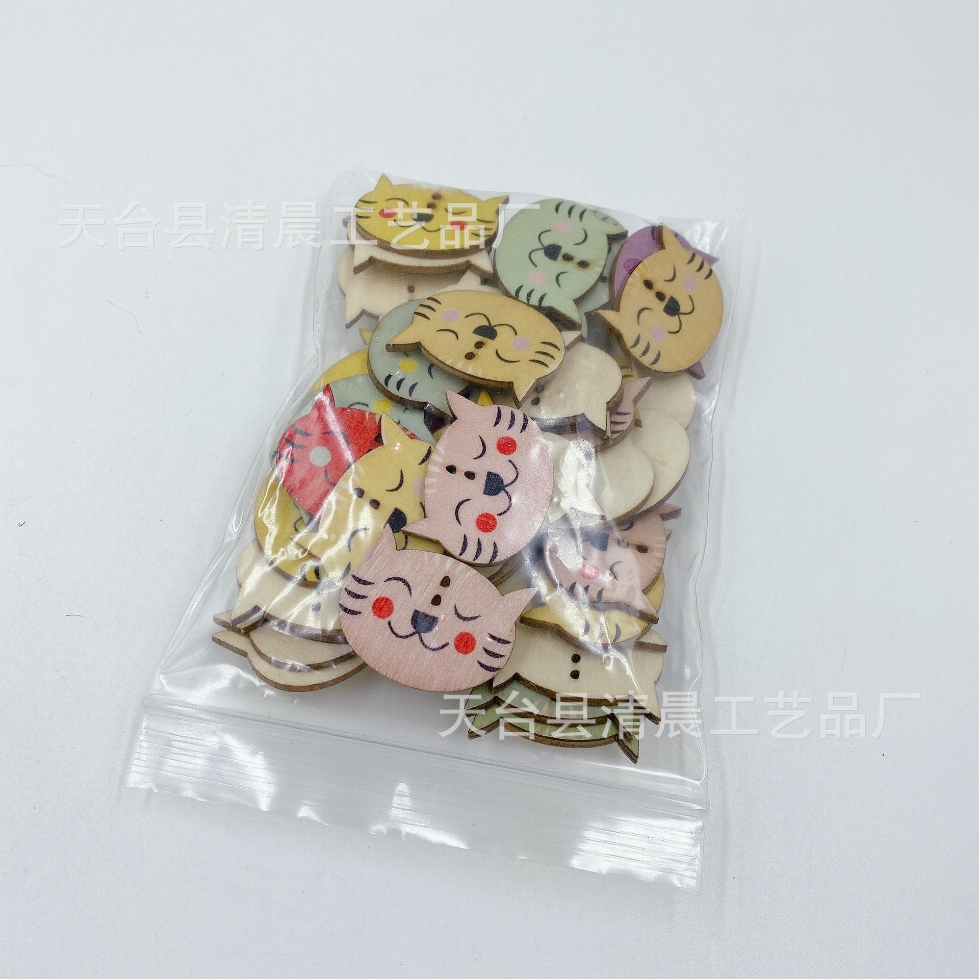 Paquete de 50 botones de madera con dibujos de animales, botones de madera con forma de gato, botones de madera con forma de gatito, accesorios decorativos.