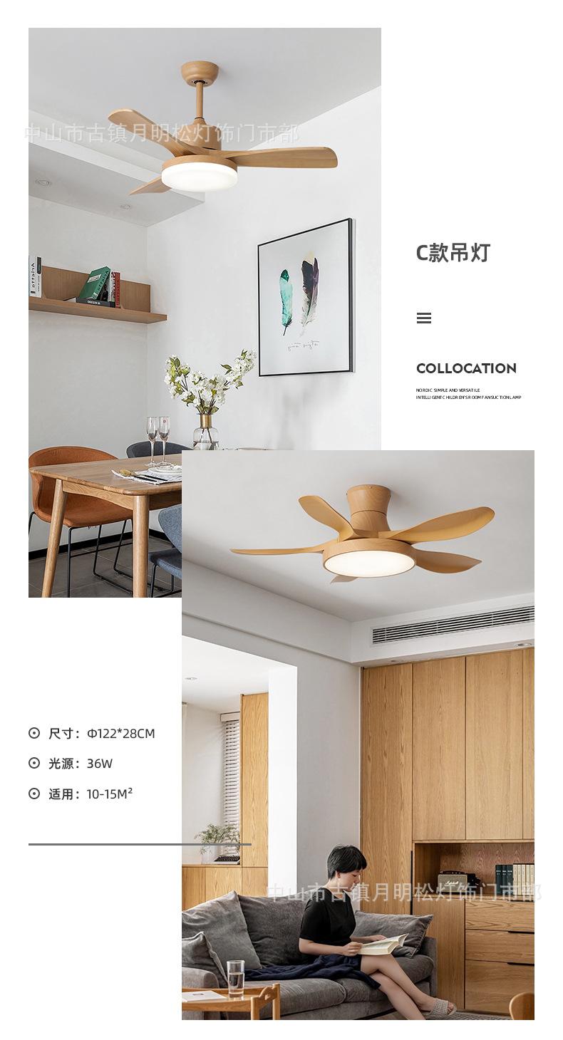 Lámpara de ventilador nórdica de madera maciza para comedor, lámpara de techo, lámpara de sala de estar, dormitorio, lámpara colgante de ventilador japonés de troncos, ventilador de 52 pulgadas
