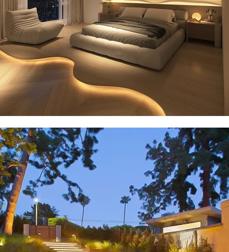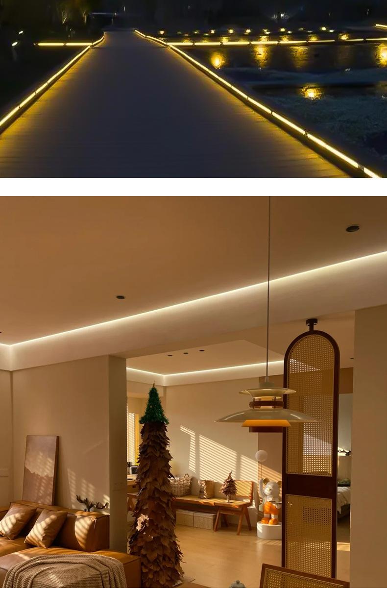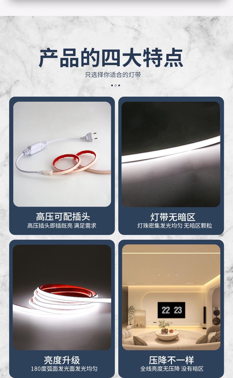 Tira de Luz COB Atenuación Tricolor Autoadhesiva Impermeable Tira de Luz 220V Luz Lineal Techo de Sala de Estar Luz de Línea LED Hecha a Medida