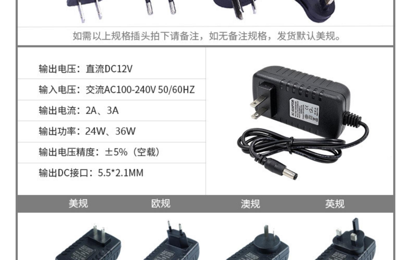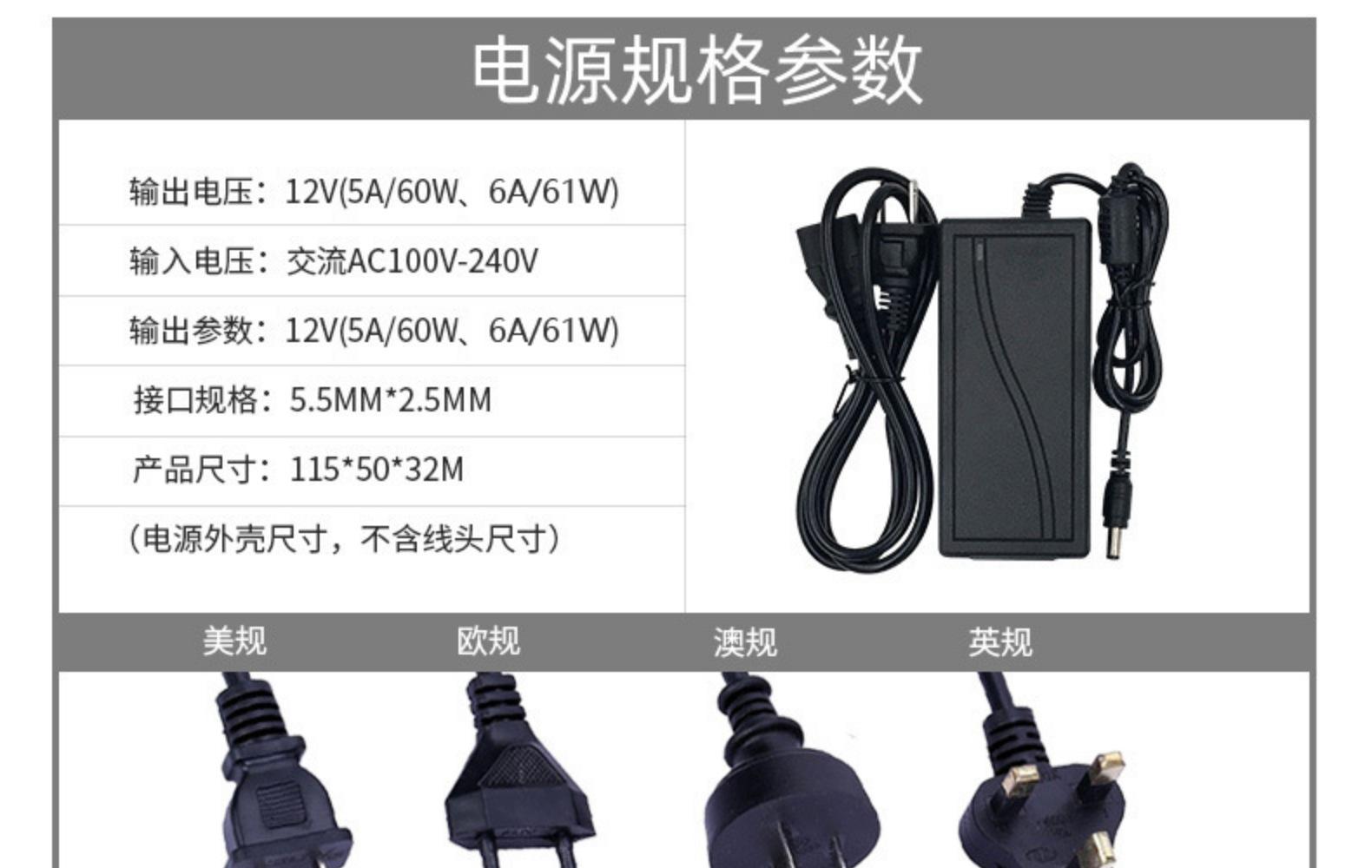 Bagged 5 m-3A power supply, Bagged 10 m-5A power supply, Color box 5 m-3A power supply, Color box 10 m-5A power supply
