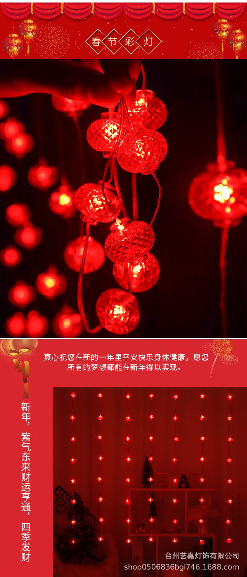 Cortina de luces LED para el Festival de Primavera, farolillo rojo festivo, decoración de Año Nuevo, luz colgante para balcón, luz nocturna de Año Nuevo, cadena de luces de ambiente