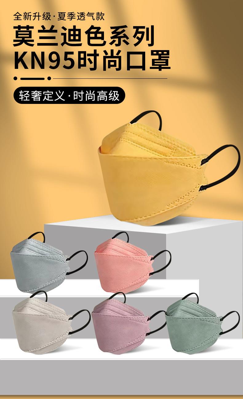 Mascarilla Morandi KN95 Tipo Pez Hoja de Sauce Mascarilla Protectora 3D Edición Moda 94 Desechable de Cuatro Capas
