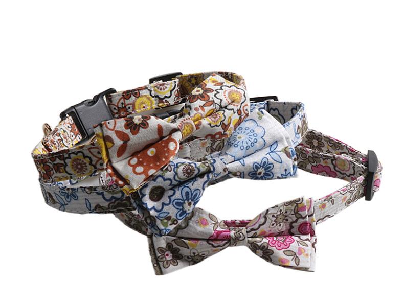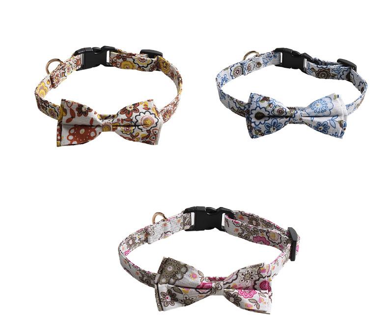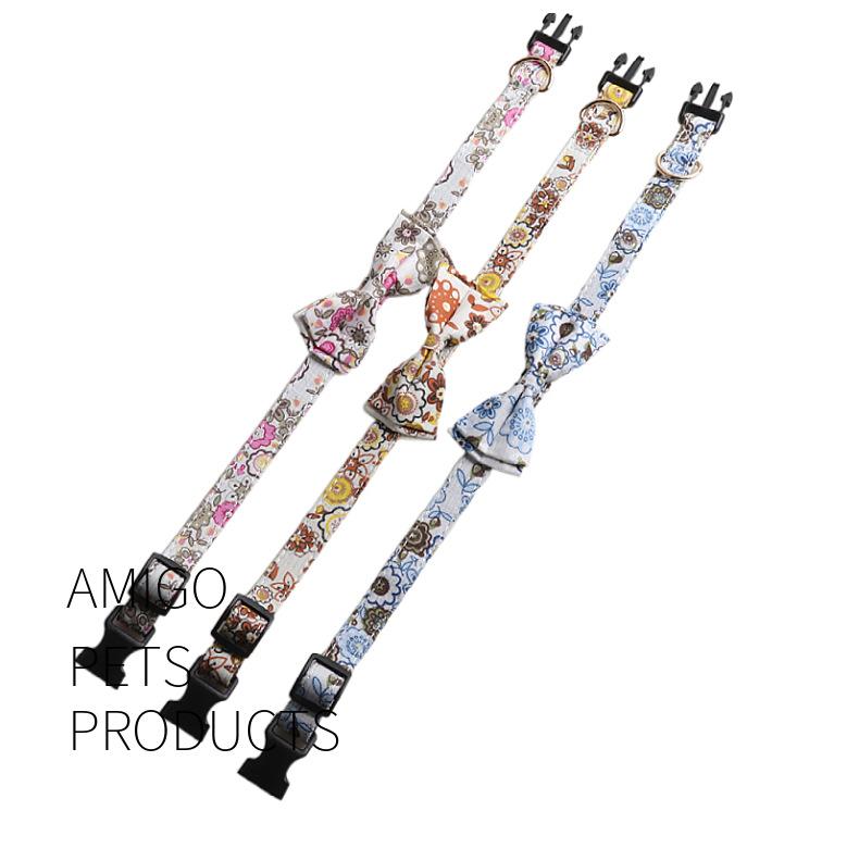 Nuevo collar para mascotas Amingge con lazo de tela floral y hebilla de plástico con lazo móvil
