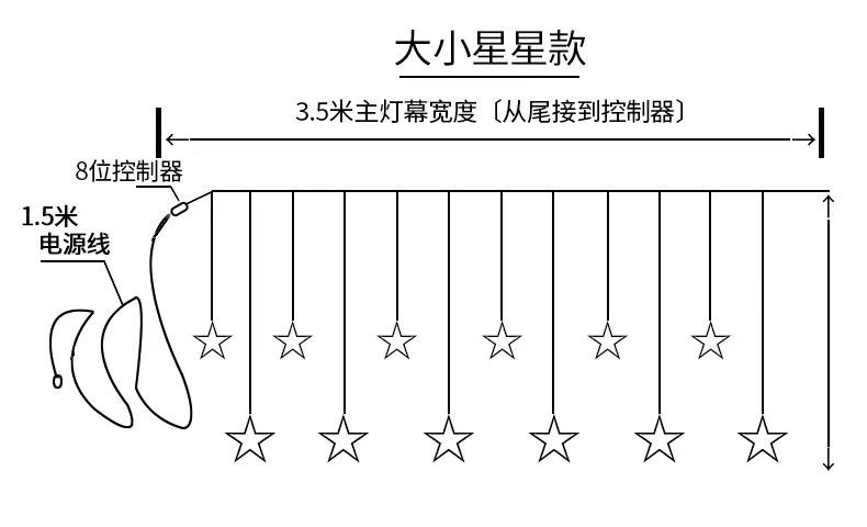 Venta caliente transfronteriza luces de cortina led luces de tira de hielo luces de estrella decoración navideña ambiente sentido de las estrellas luces de Navidad